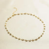 This stunning gold bezel set crystal necklace features a beautiful mix of diamond-cut cubic zirconia stones in various shapes — pear, oval, emerald, and round — for a modern yet timeless sparkle.
