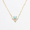 Elevate your everyday style with this elegant 14K Gold Vermeil Blue Opal Crescent Necklace. The necklace features a luminous blue opal gemstone set within a delicate crescent design, adorned with a tiny drop charm beneath for a touch of sparkle. Crafted in high-quality gold vermeil (thick 14K gold plating over sterling silver), this piece offers both luxury and durability.