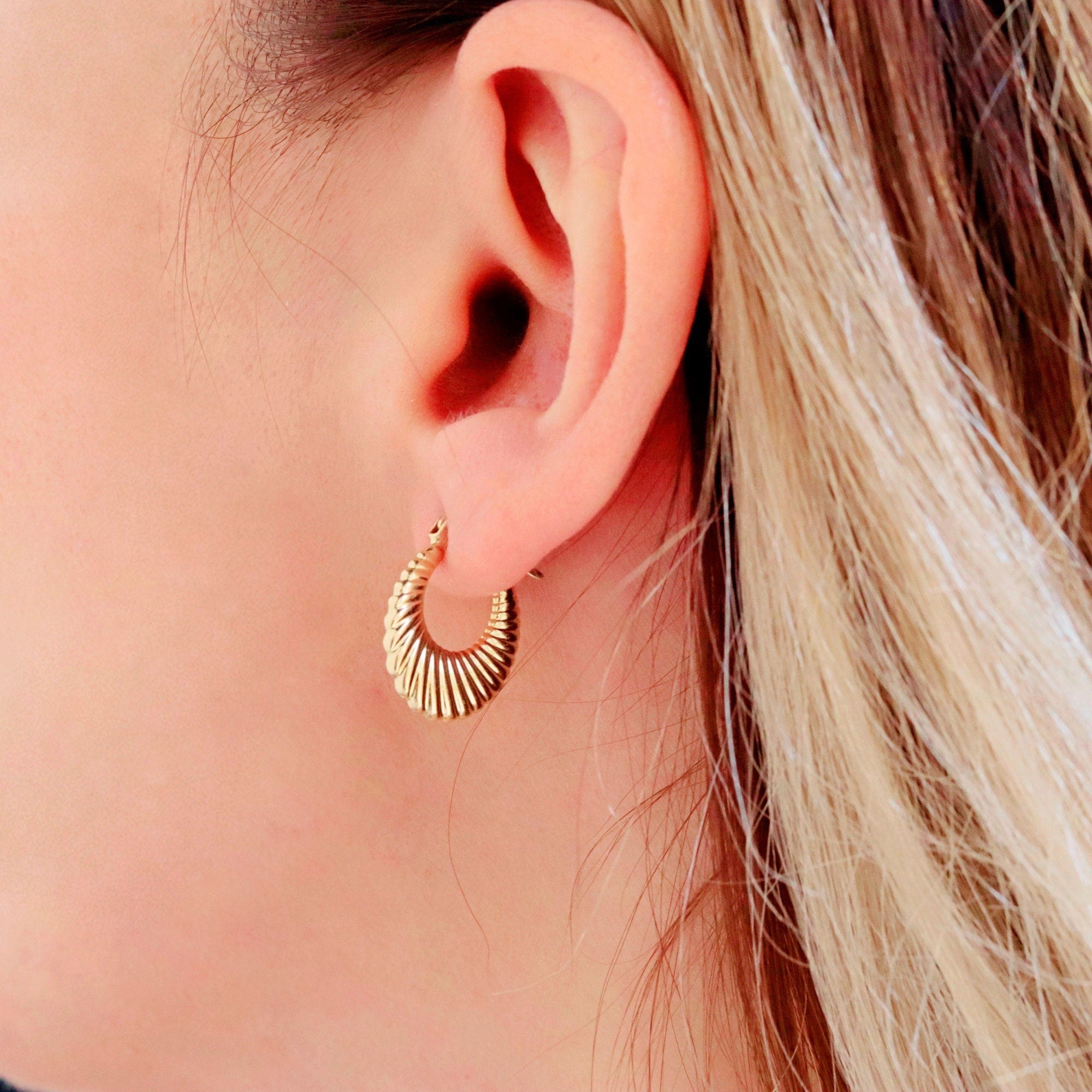 Add a little flair to your jewelry collection with these 14K Solid Gold Chunky Hoop Earrings. Featuring a vintage-inspired croissant design, these hoops strike the perfect balance between bold and timeless. Whether you’re dressing up for a special occasion or elevating your everyday look, these earrings add effortless glamour. A thoughtful gift or a stylish treat for yourself — they’re sure to become a new favorite.
