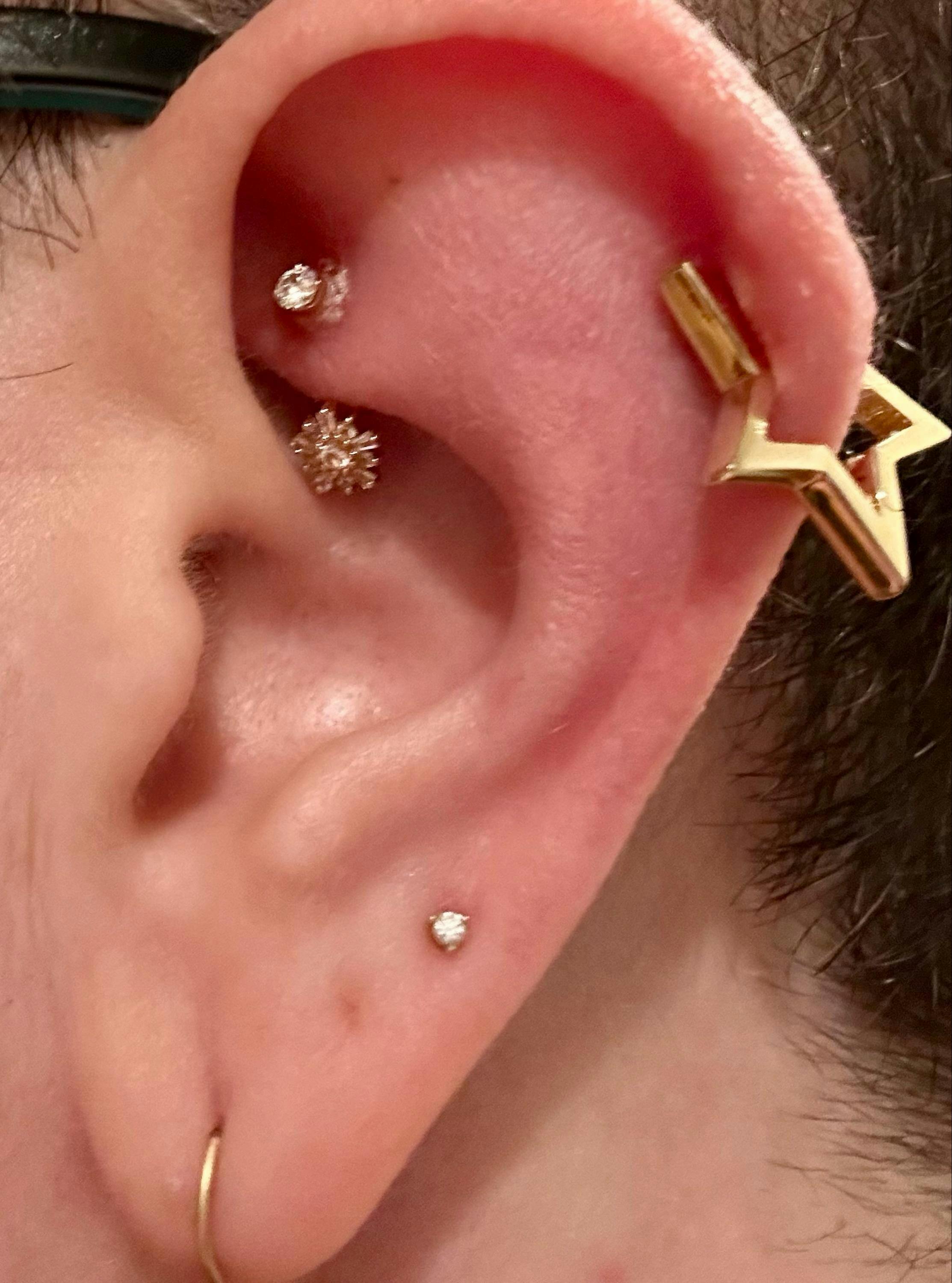 I bought a single star earring for my left helix piercing. I had been looking for a star in solid gold for some time and caught this one on sale. It’s absolutely beautiful, well made, and was shipped to me quickly. Very happy with my purchase!
