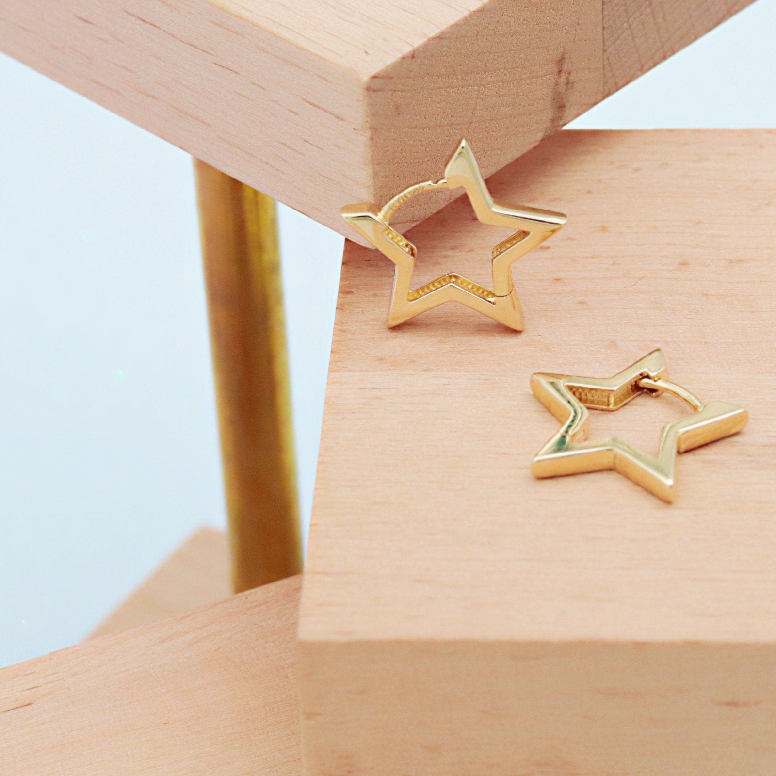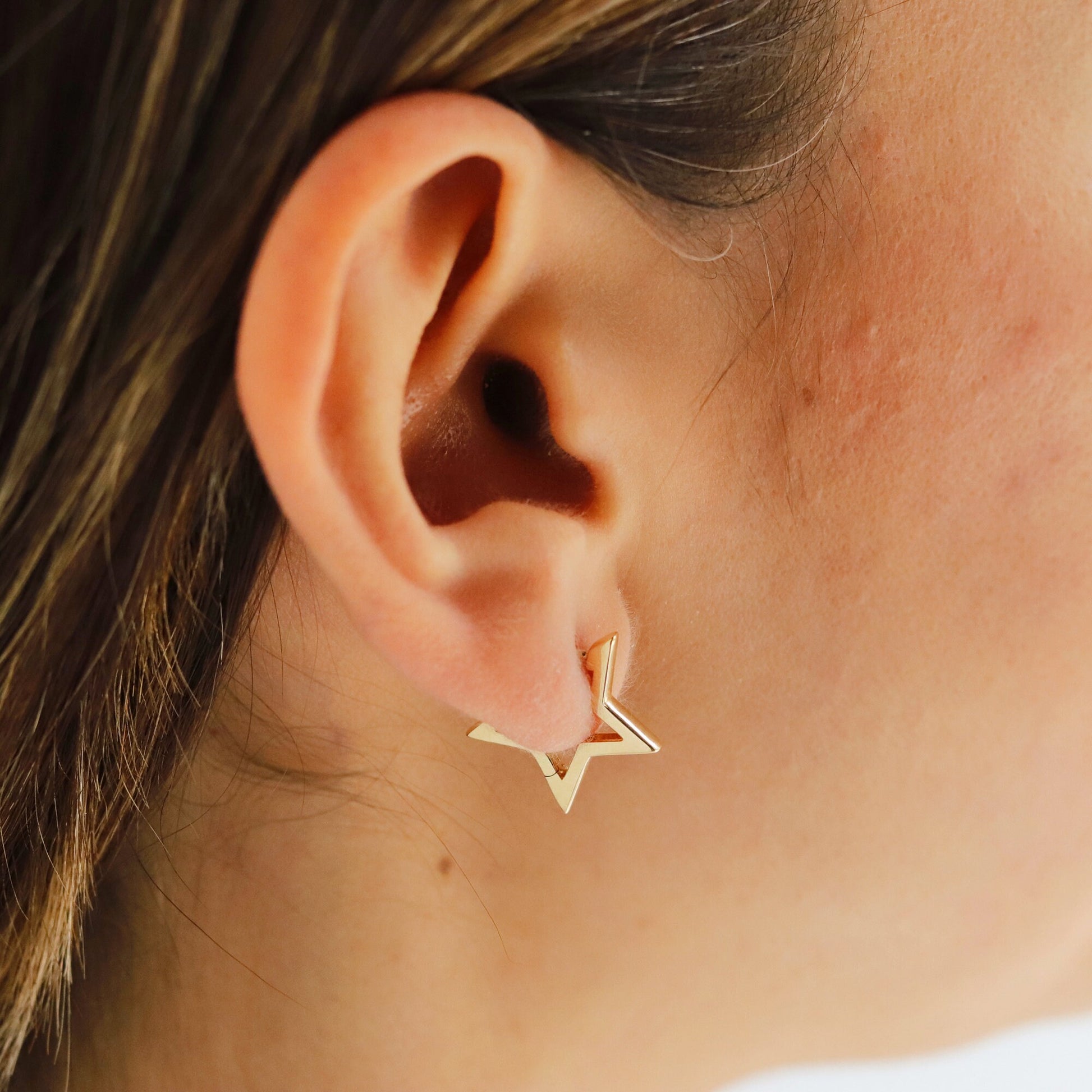 Shine bright with our 14K Gold Star Huggie Earrings – the perfect blend of everyday elegance and celestial charm. Whether you're treating yourself or surprising someone special, these hoops are a timeless gift that complements any style.