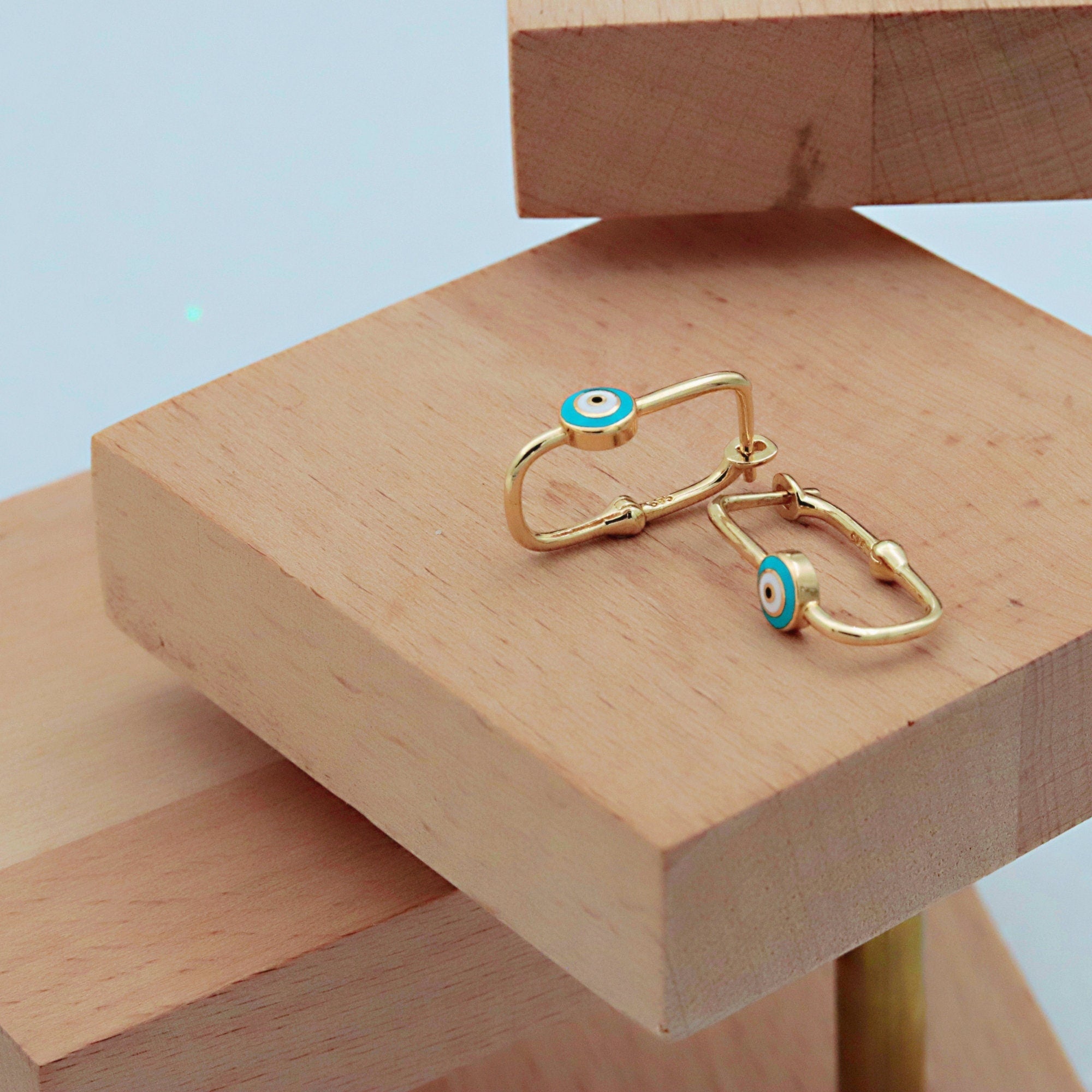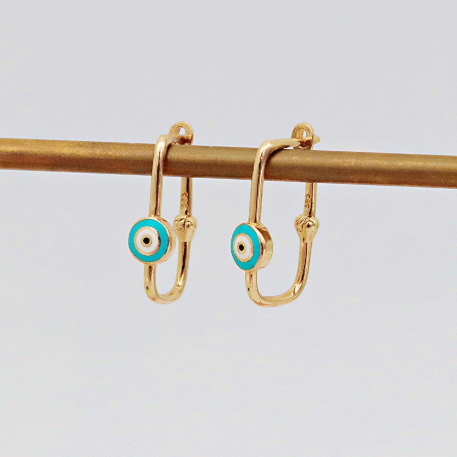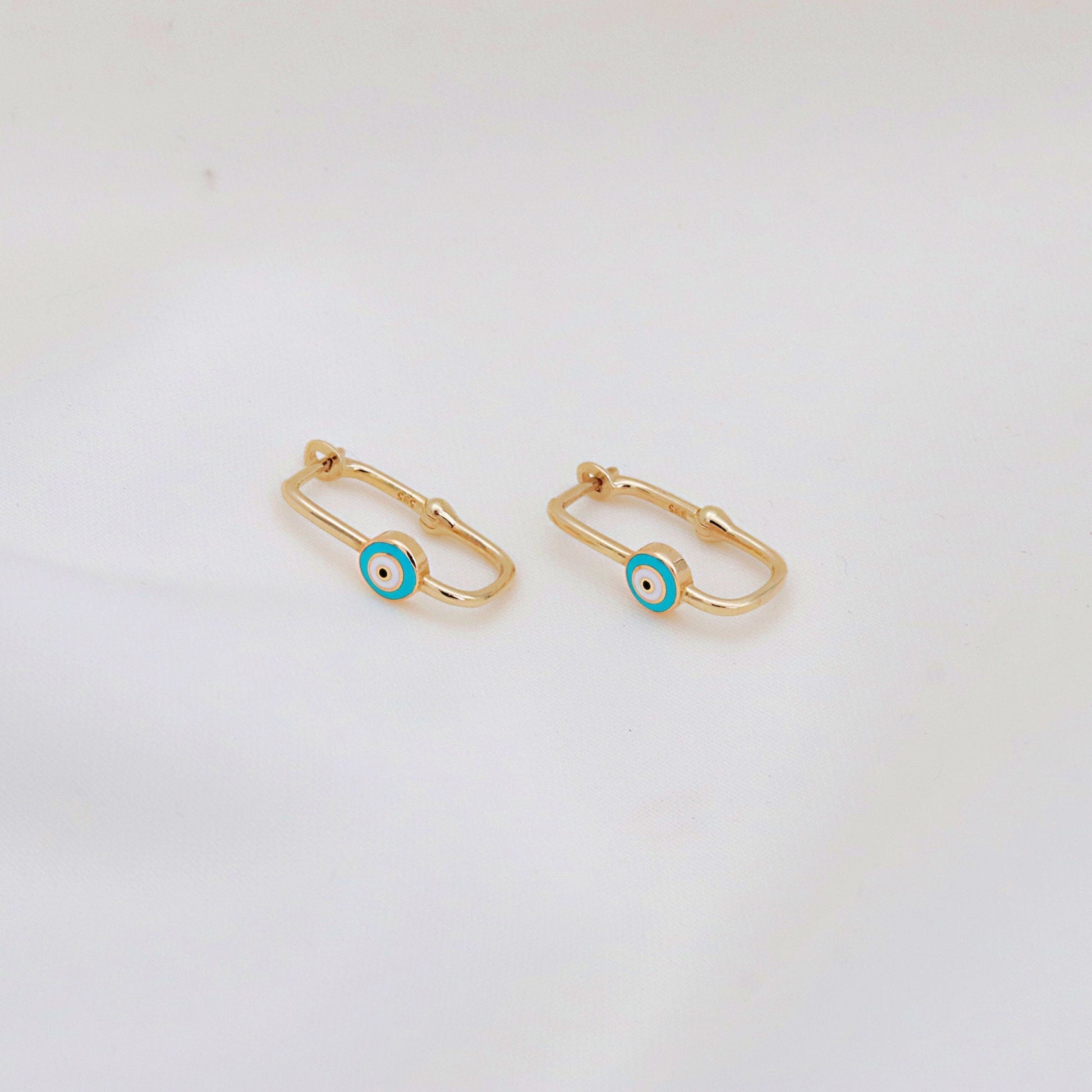 Add a touch of style and symbolism to your jewelry collection with our 14K Solid Gold Evil Eye Paperclip Earrings. Designed with a sleek paperclip shape and accented by the timeless Evil Eye symbol, these earrings blend modern minimalism with meaningful protection. Lightweight yet durable, they’re perfect for everyday wear or special occasions.