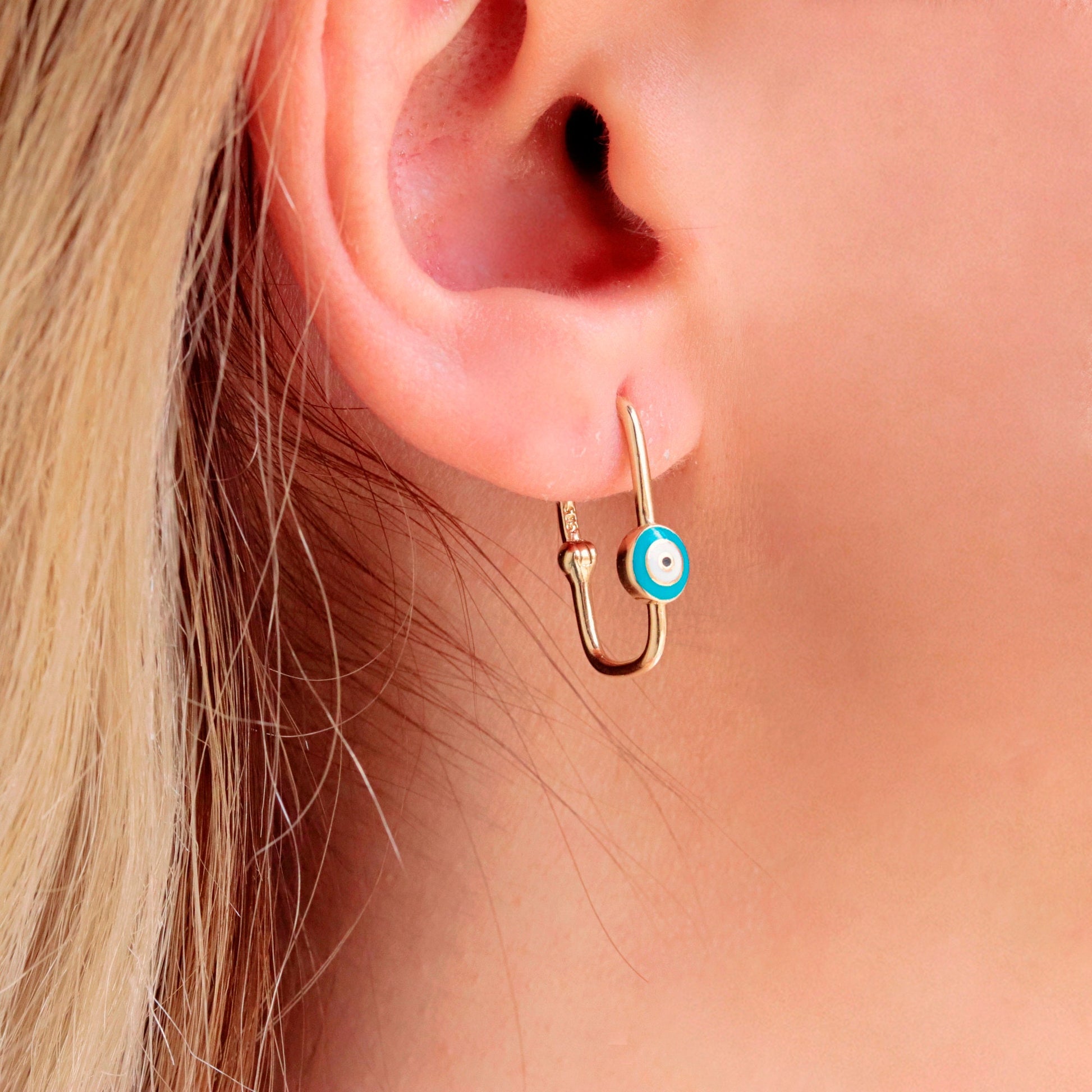 Design: Paperclip-style earrings with Evil Eye charm