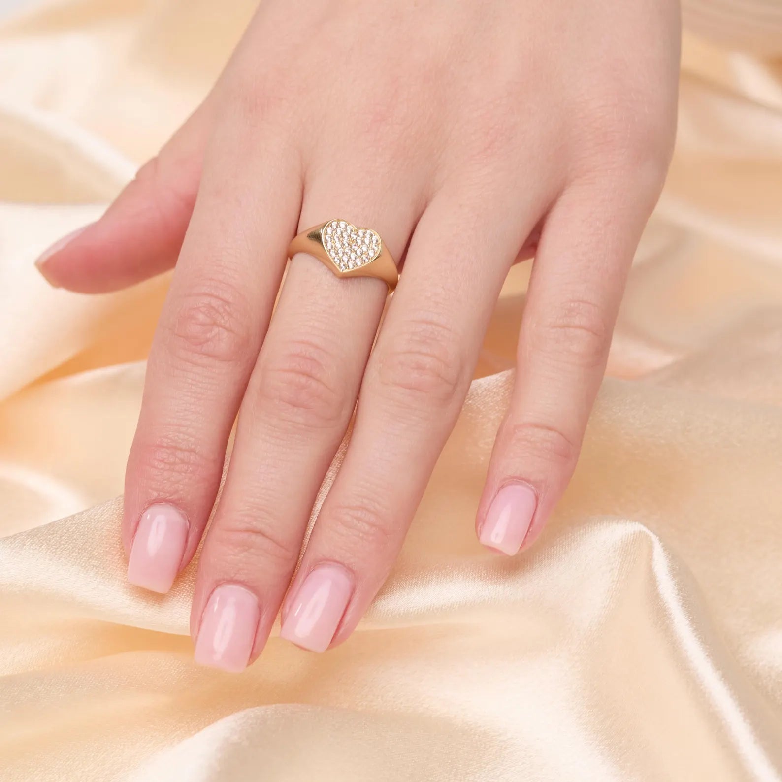 Romantic, sparkling, and timeless — our 14K Solid Gold Heart Ring is a beautiful symbol of love and elegance. Featuring a heart-shaped design encrusted with brilliant pavé-set stones, this statement ring adds a subtle sparkle to any outfit. Perfect for everyday wear, stacking with other rings, or as a meaningful gift, it’s designed to be cherished for years.