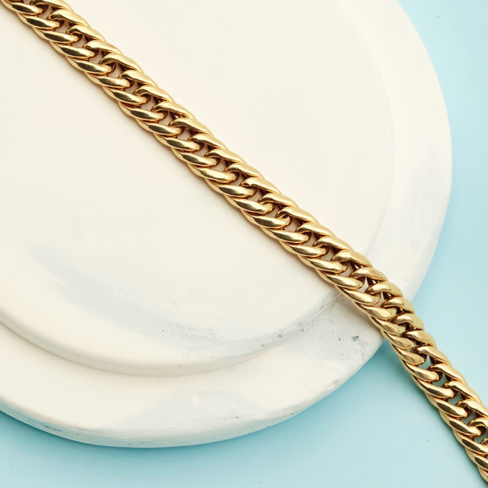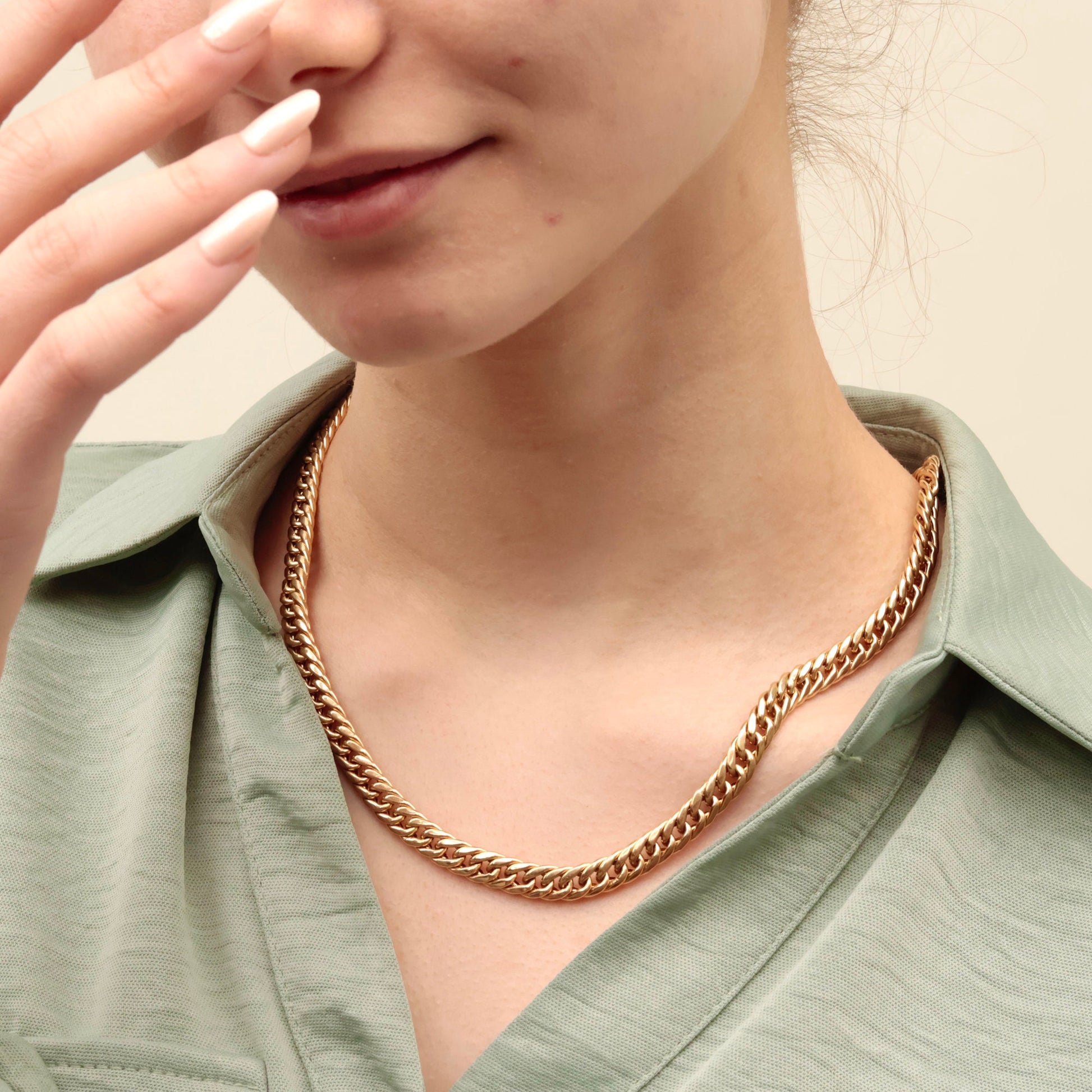 Bold, timeless, and luxurious — our 14K Solid Gold Cuban Chain Necklace is a statement piece that elevates any look. Featuring a chunky 7.30 mm Miami Cuban chain design, this necklace exudes sophistication and strength, making it perfect for both daily wear and special occasions. Whether worn solo for maximum impact or layered with other pieces, this chain is a must-have addition to any fine jewelry collection.
