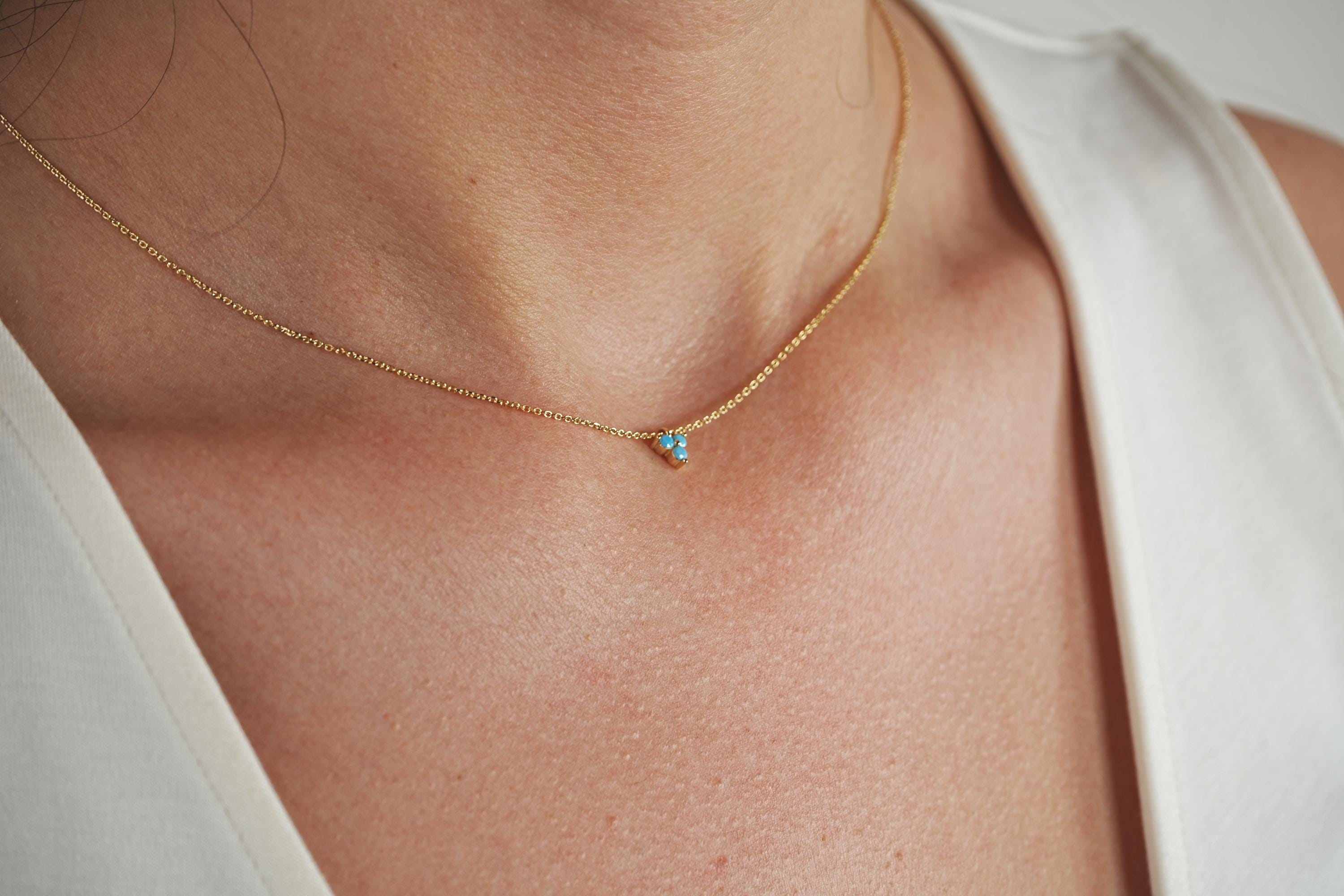 Delicate, elegant, and full of charm — our 14K Gold Tiny Turquoise Flower Necklace is a handcrafted piece designed to brighten any outfit. Featuring a dainty turquoise blue flower pendant on a fine gold chain, this minimalist necklace is perfect for layering or wearing alone for a subtle, timeless statement.
