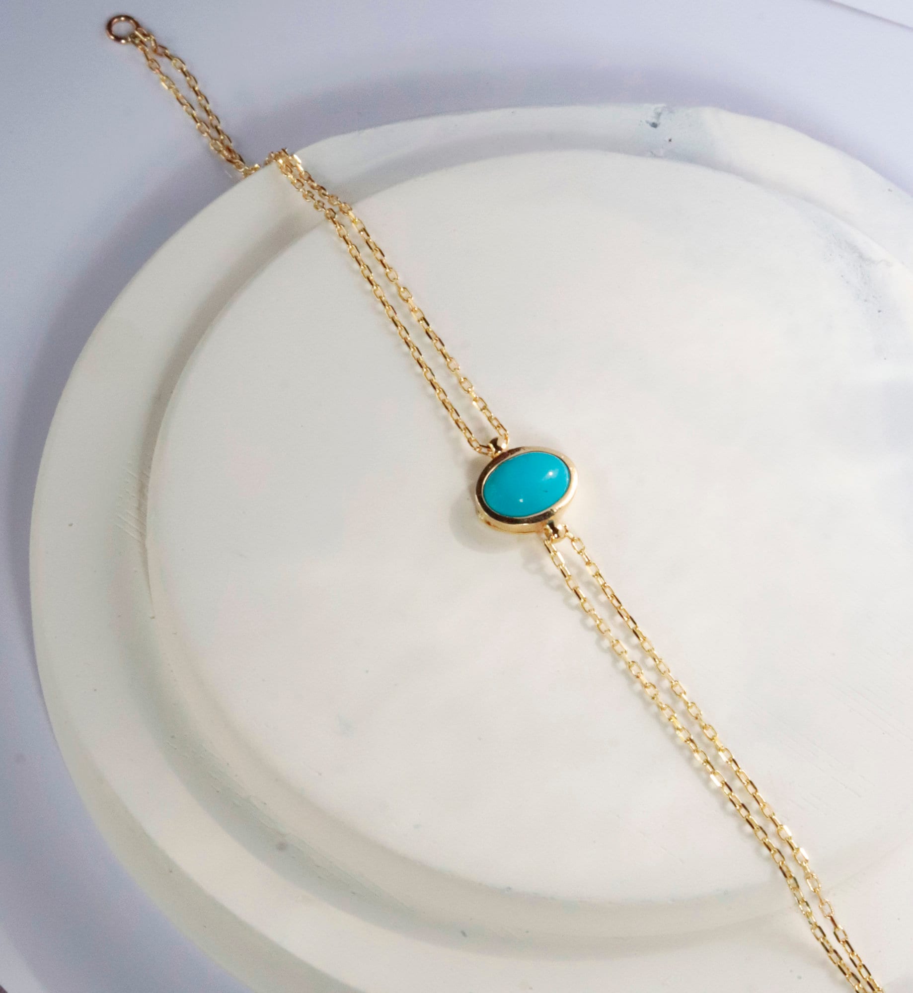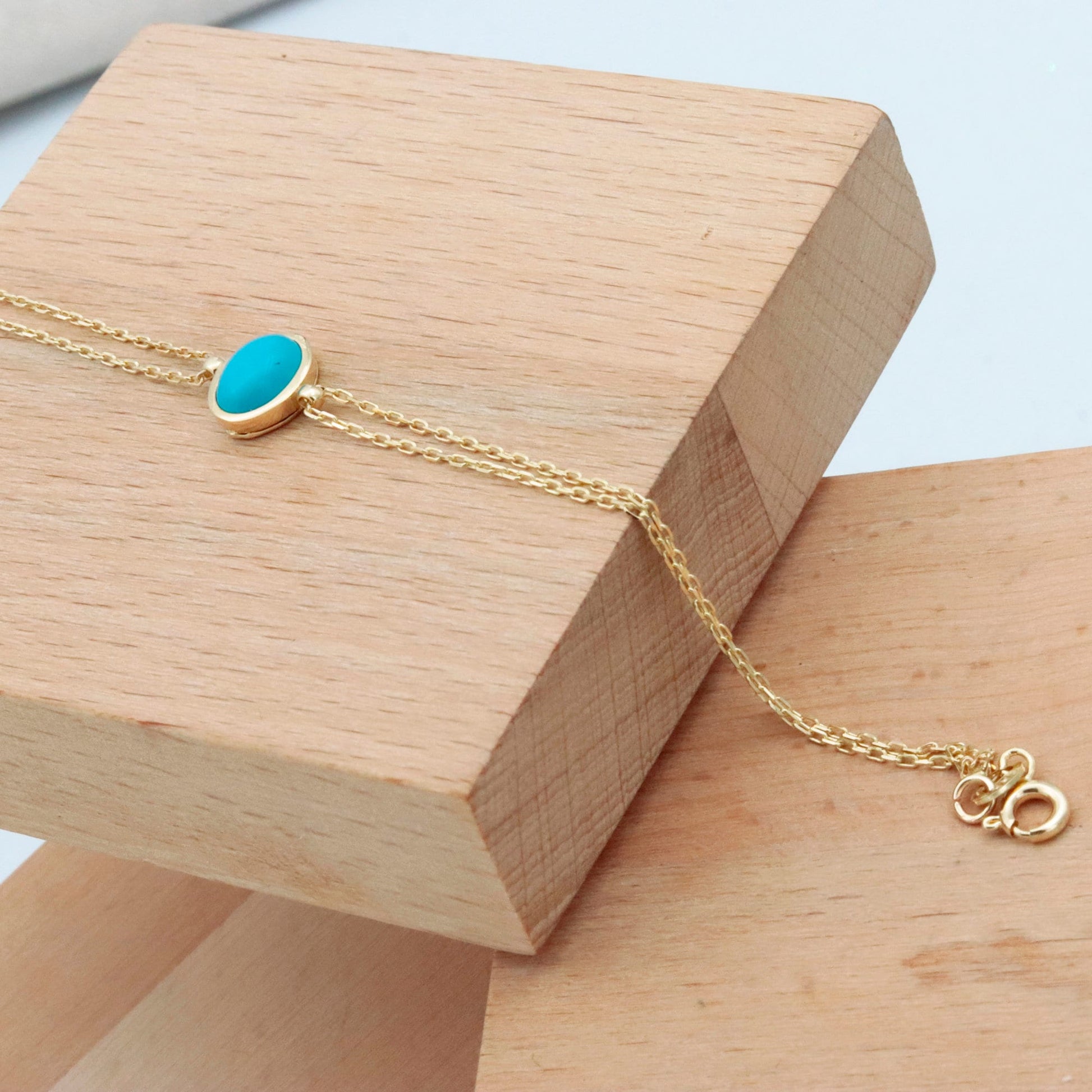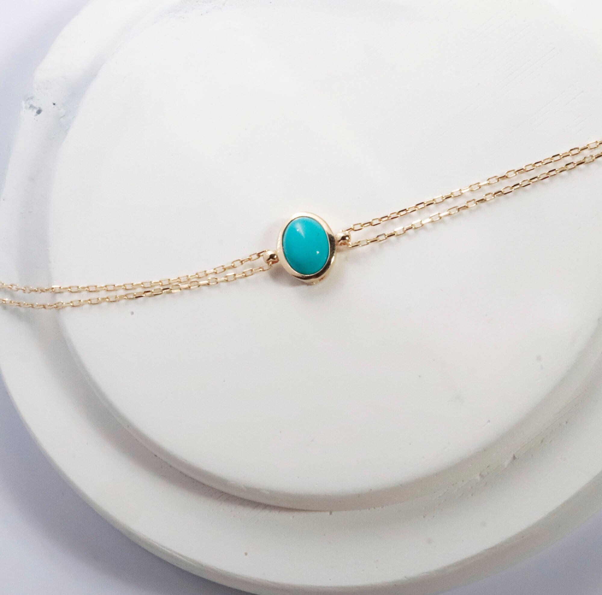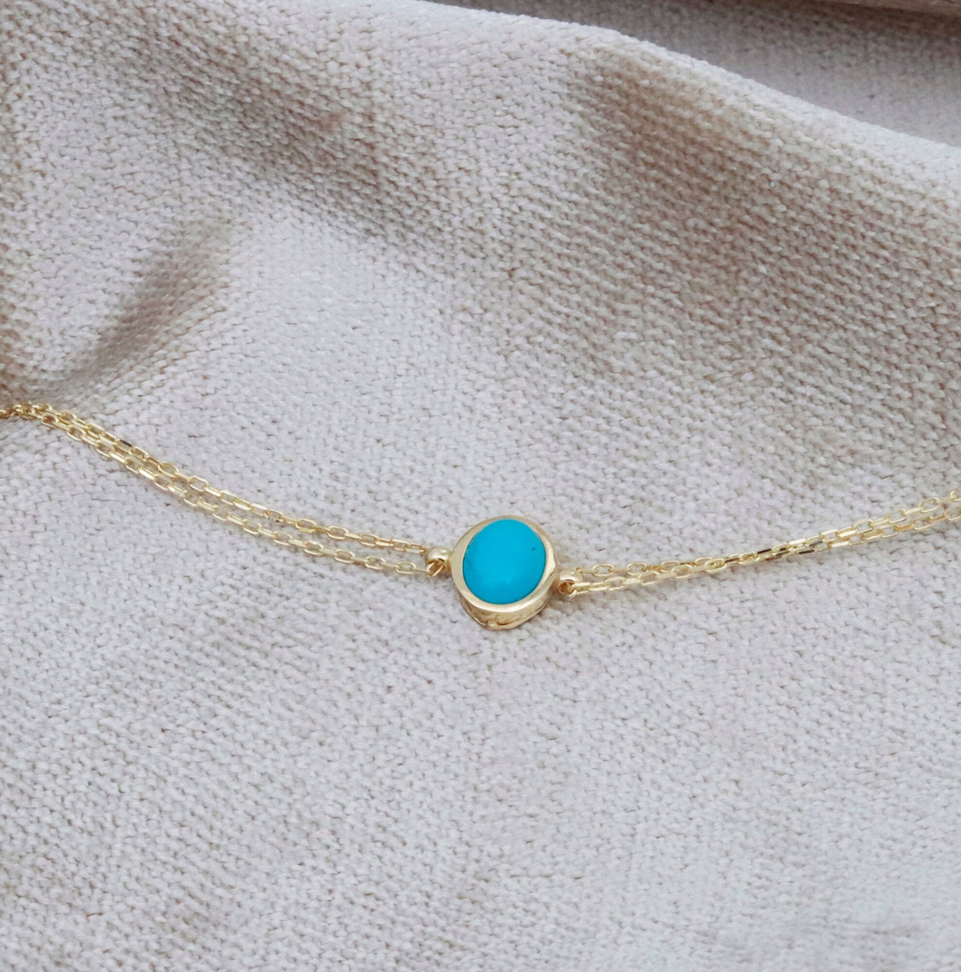 Add a pop of color to your jewelry collection with our 14K Solid Gold Turquoise Bracelet. Featuring a single natural turquoise stone set on a delicate gold chain, this minimalist bracelet is perfect for those who love understated elegance and meaningful gemstone jewelry.