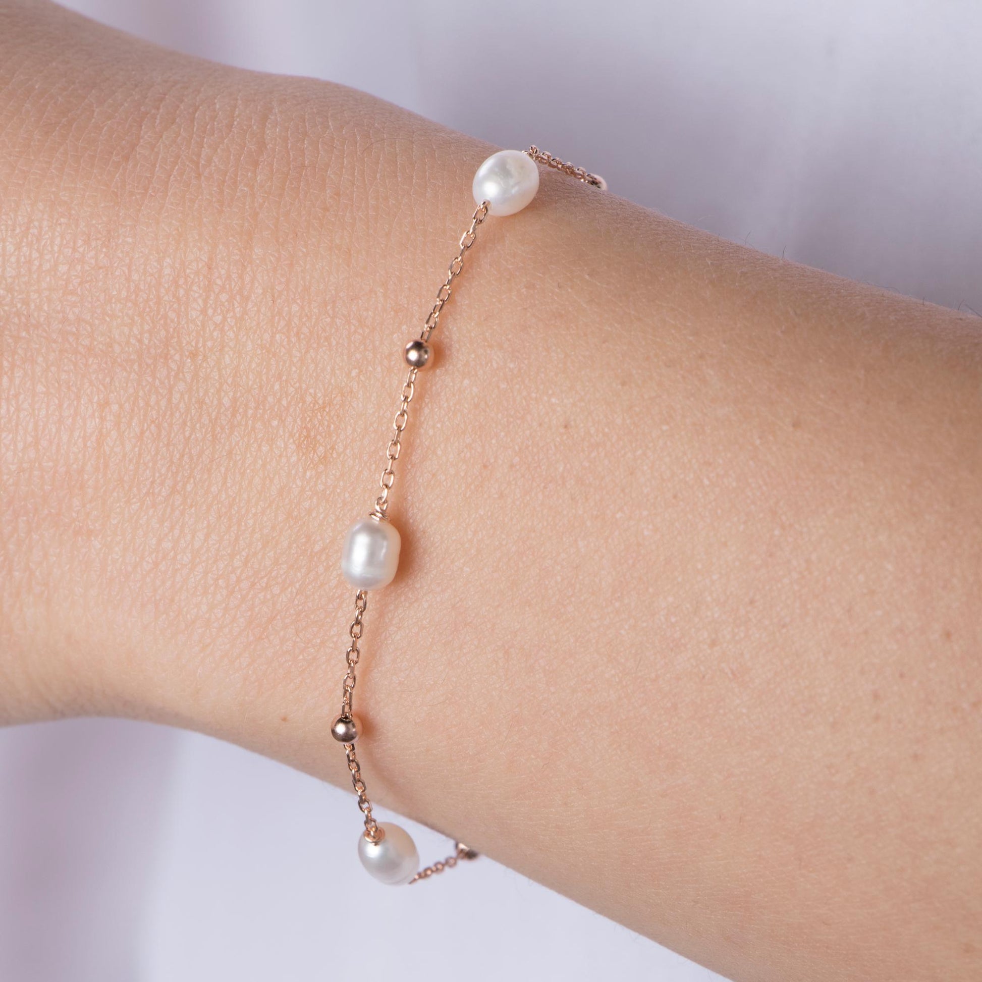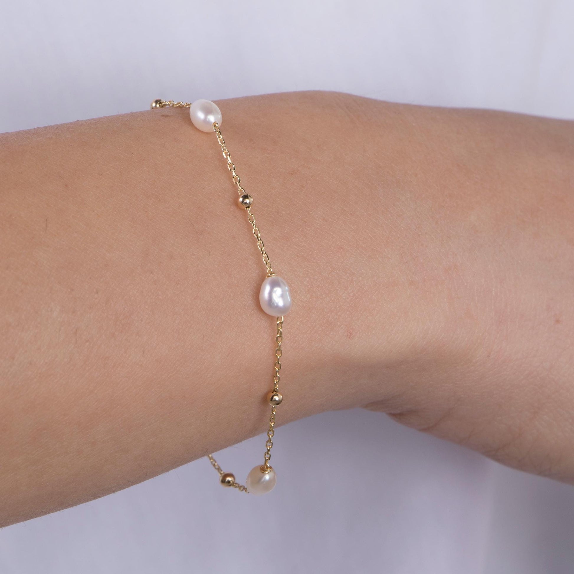 Add a touch of timeless elegance to your everyday style with this delicate freshwater pearl bracelet. Crafted from high-quality 14K gold vermeil, each bracelet features lustrous natural pearls set along a fine gold chain for a feminine, refined look. Perfect for wearing solo or layering with other dainty bracelets.