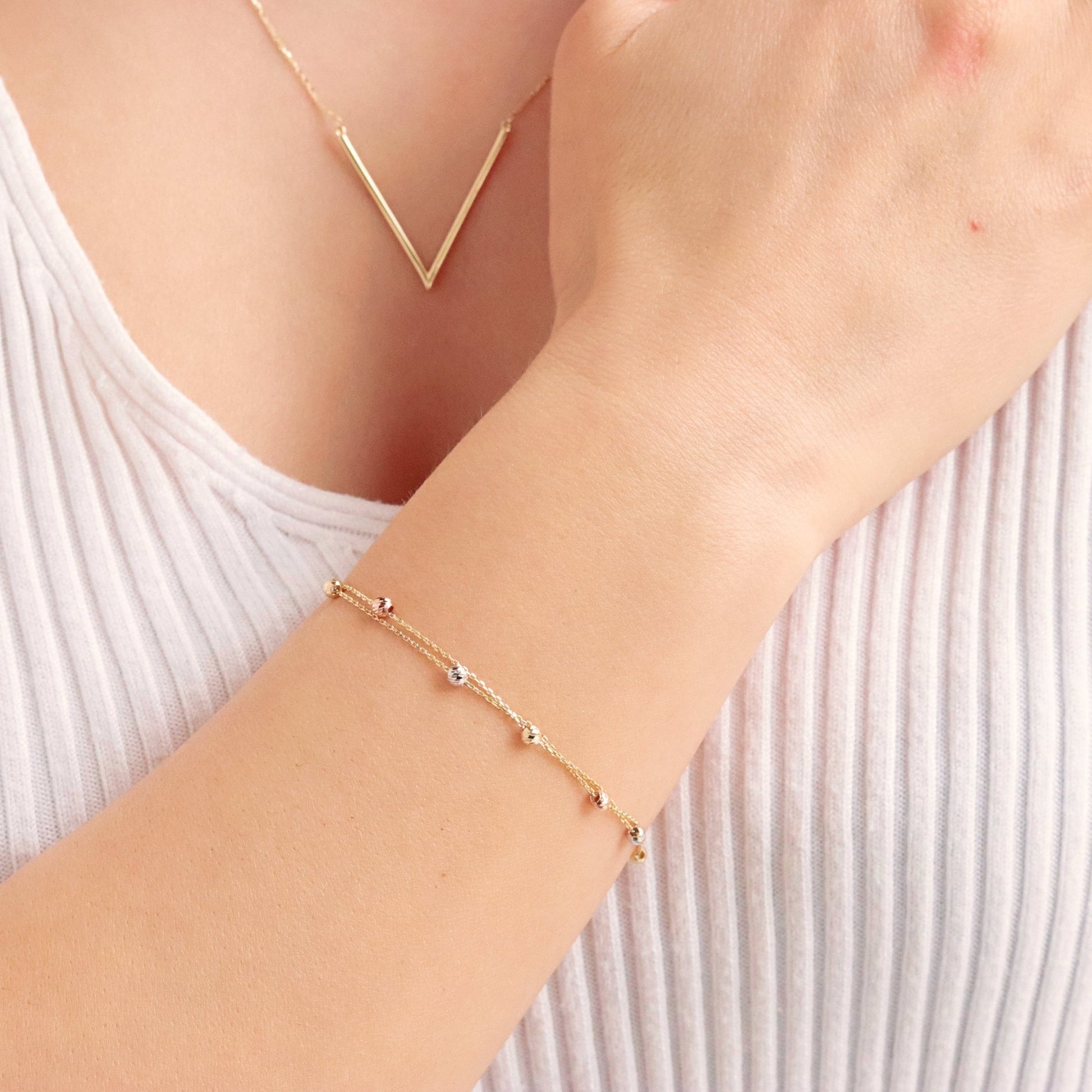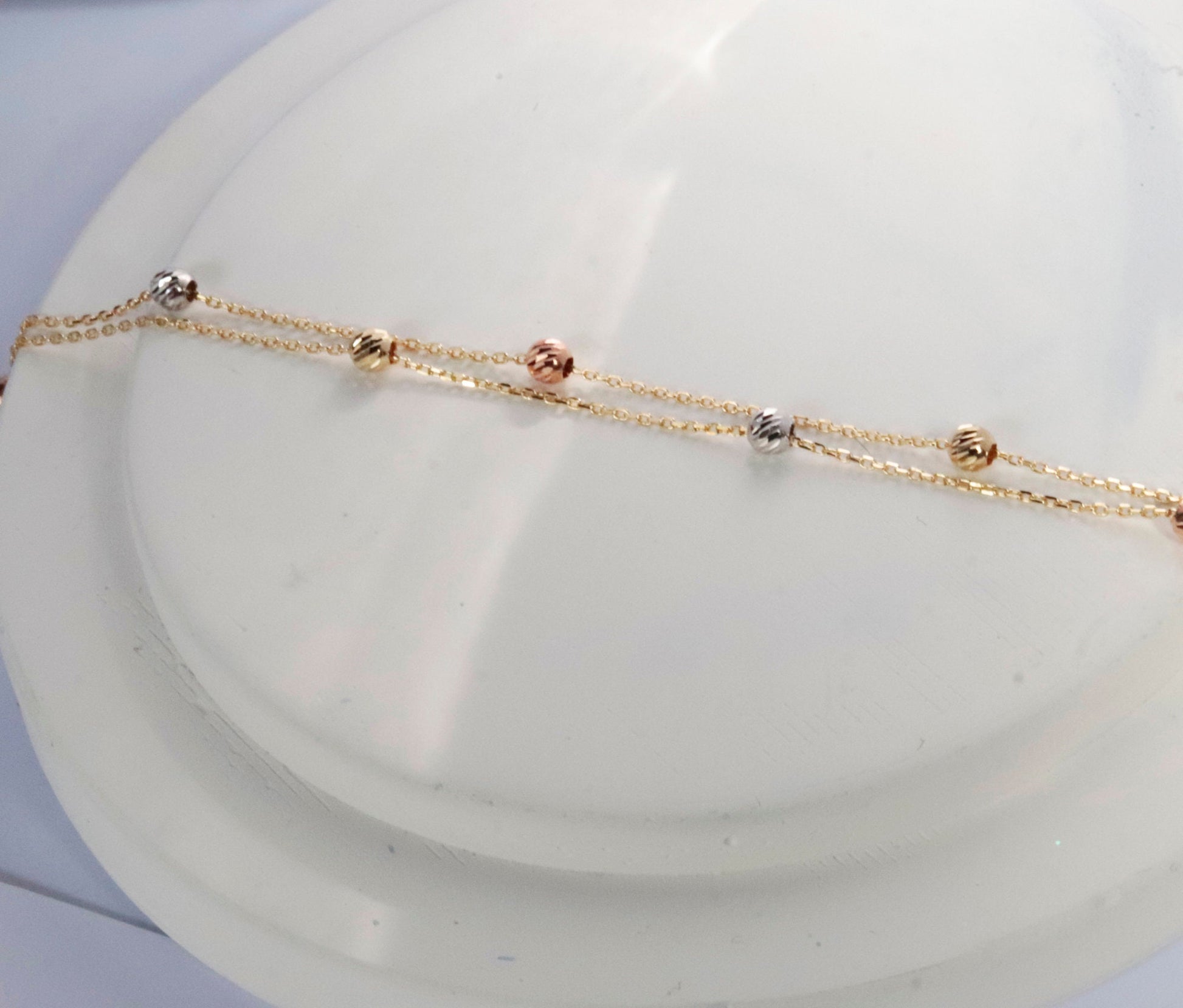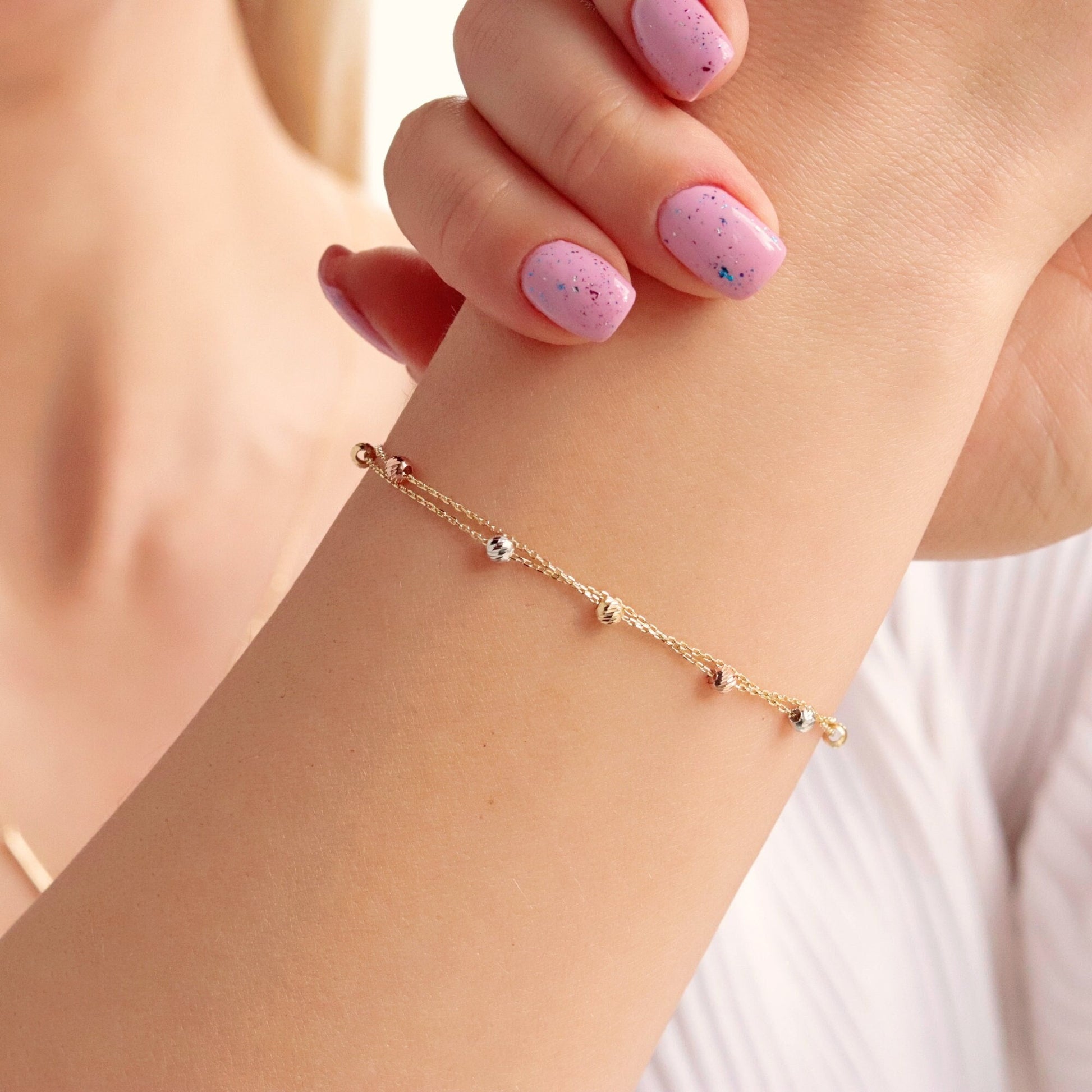 Elevate your everyday look with our 14K Solid Gold Dainty Ball Chain Bracelet. Crafted from high-quality solid gold, this delicate bracelet features a subtle ball chain design, combining simplicity with sophistication.