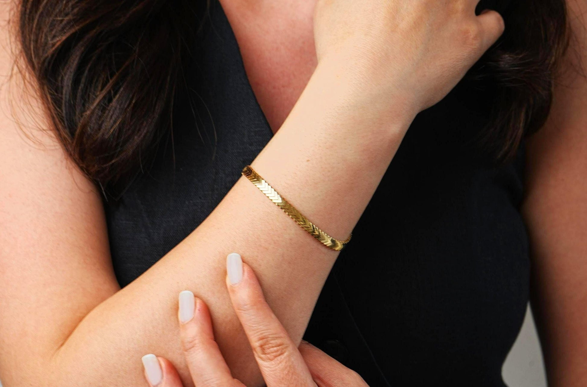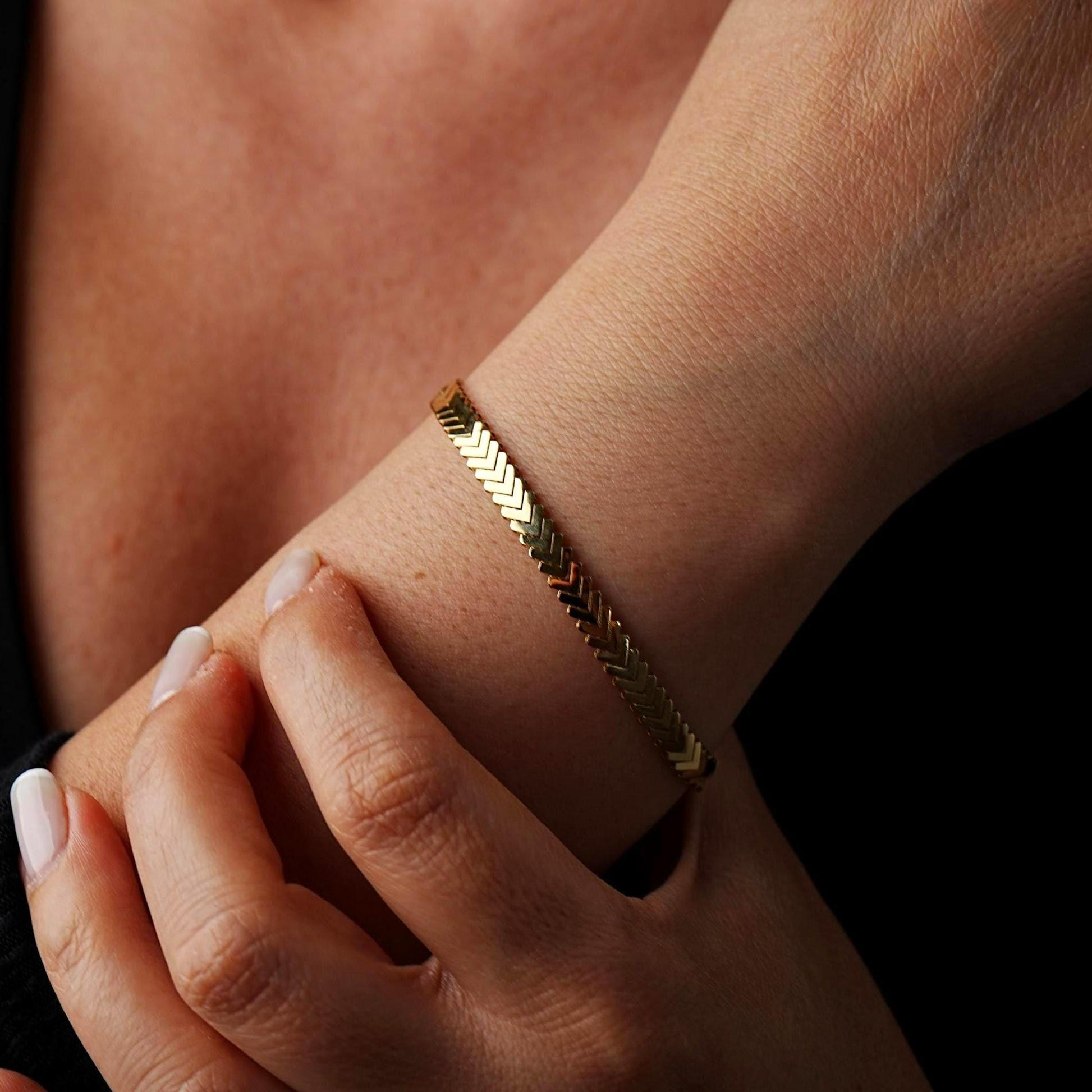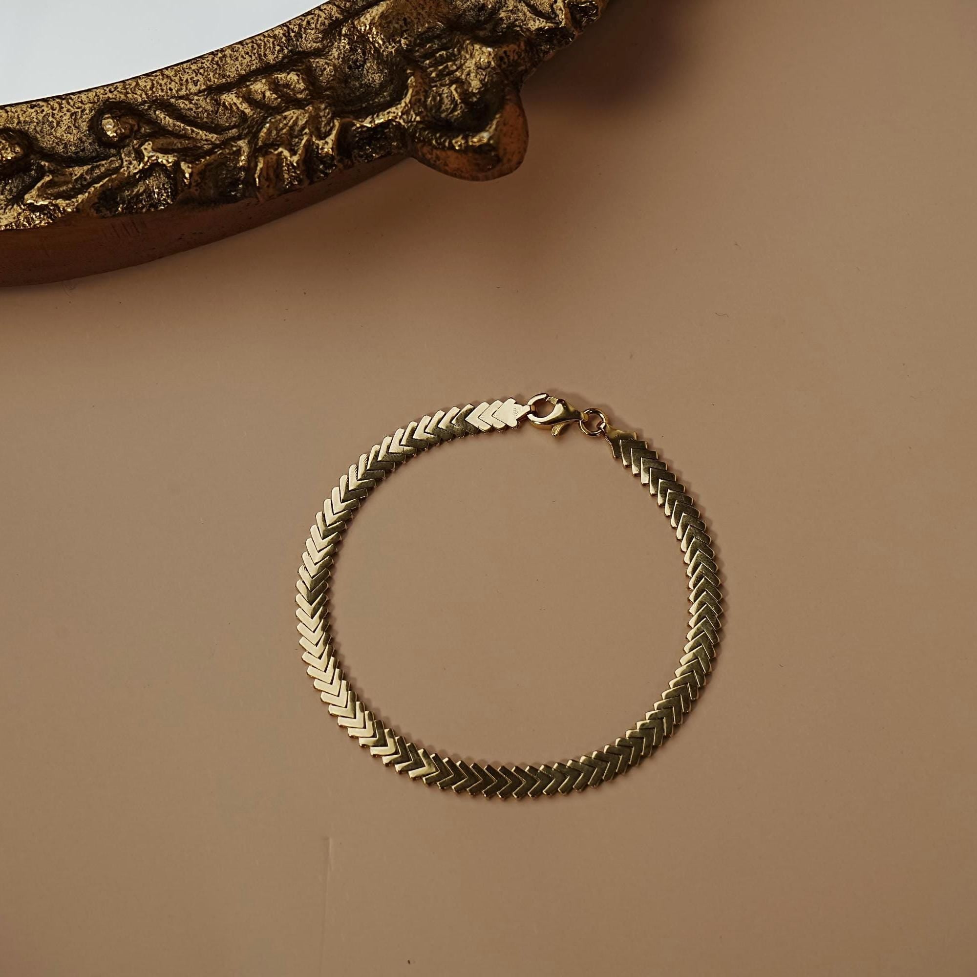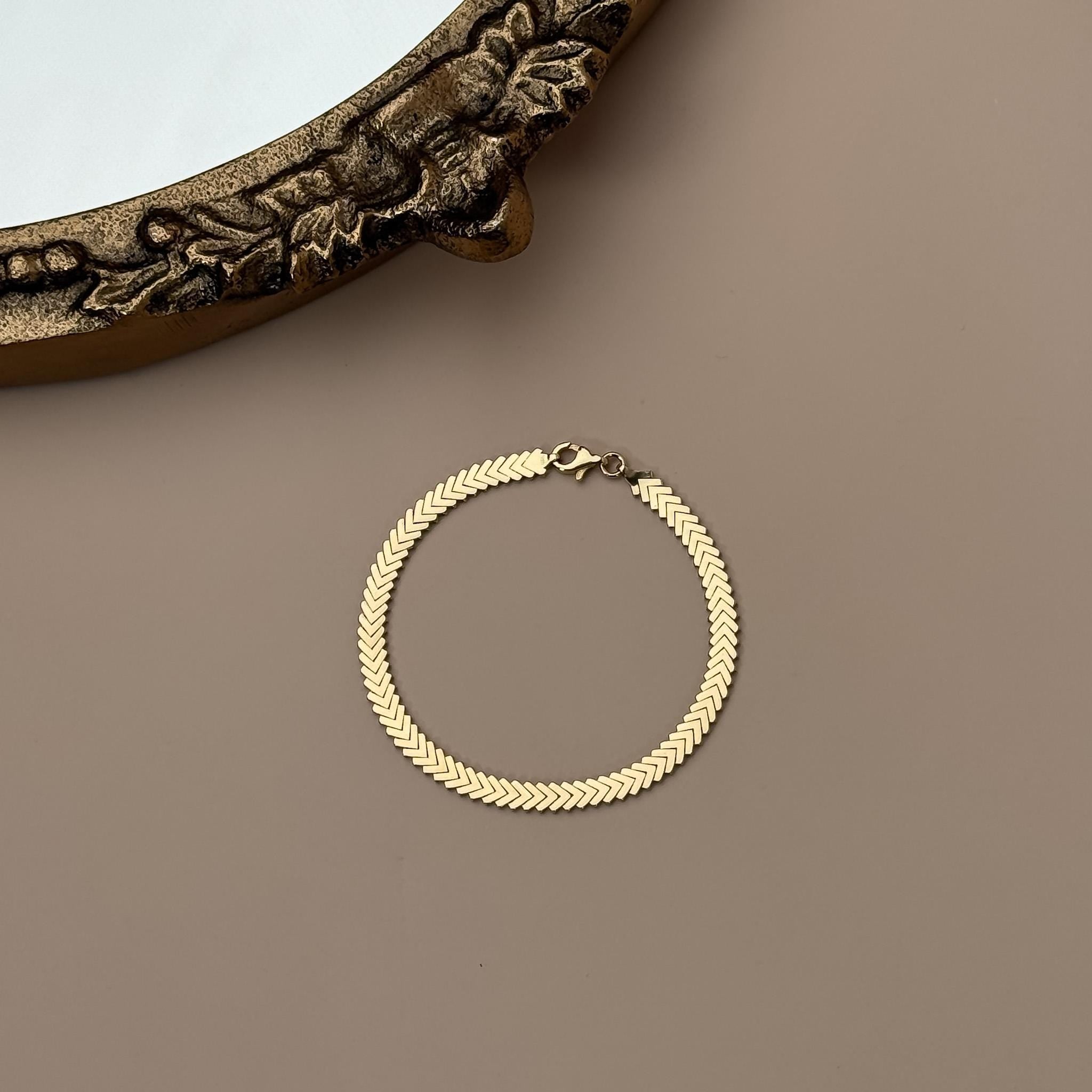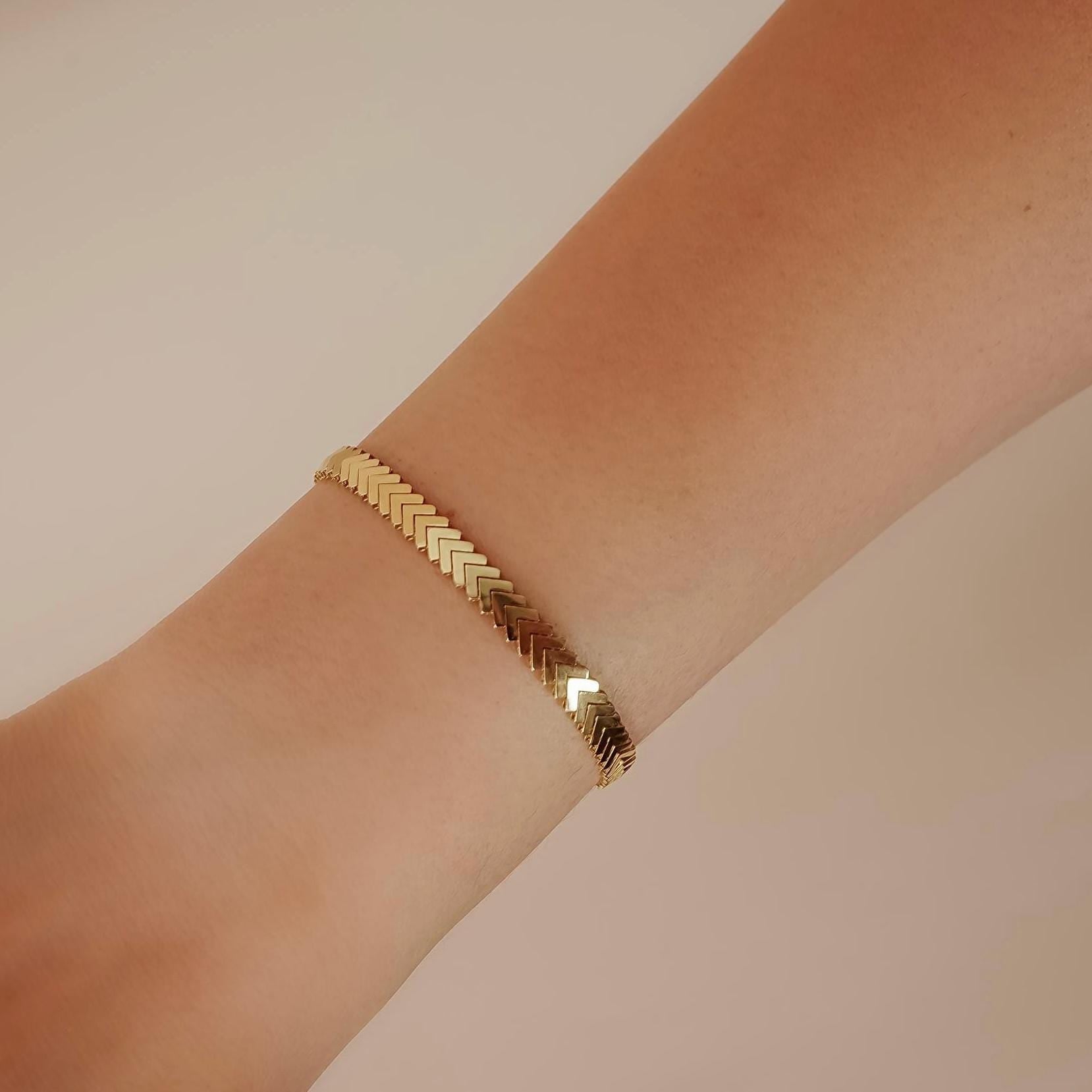 Timeless, sleek, and effortlessly elegant — our 14K Solid Gold Chevron Bracelet is a minimalist staple that elevates any jewelry collection. Featuring a striking chevron pattern, this bracelet catches the light beautifully with every movement, making it perfect for both everyday wear and special occasions. Whether worn alone for a subtle statement or layered with other pieces, it’s a versatile accessory designed to be cherished for years.