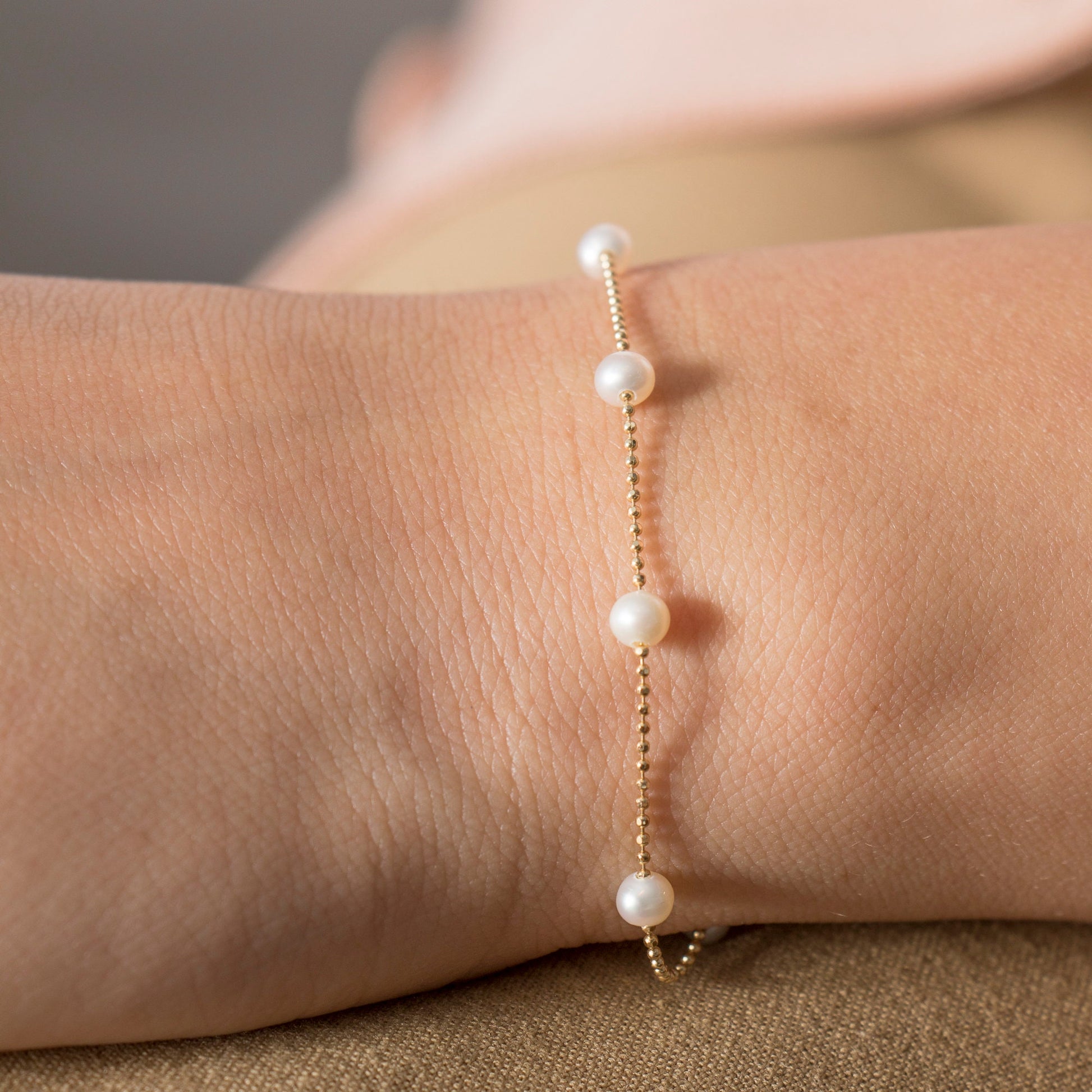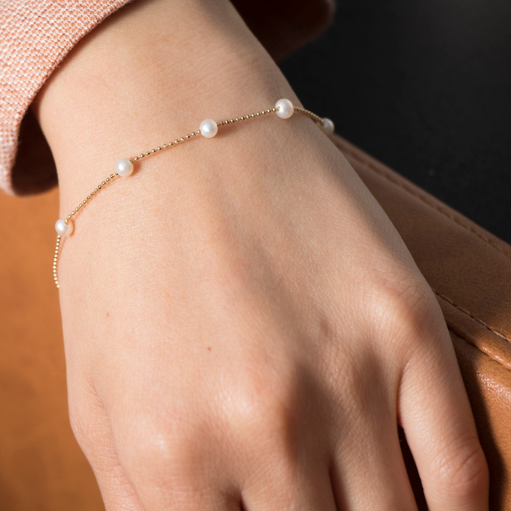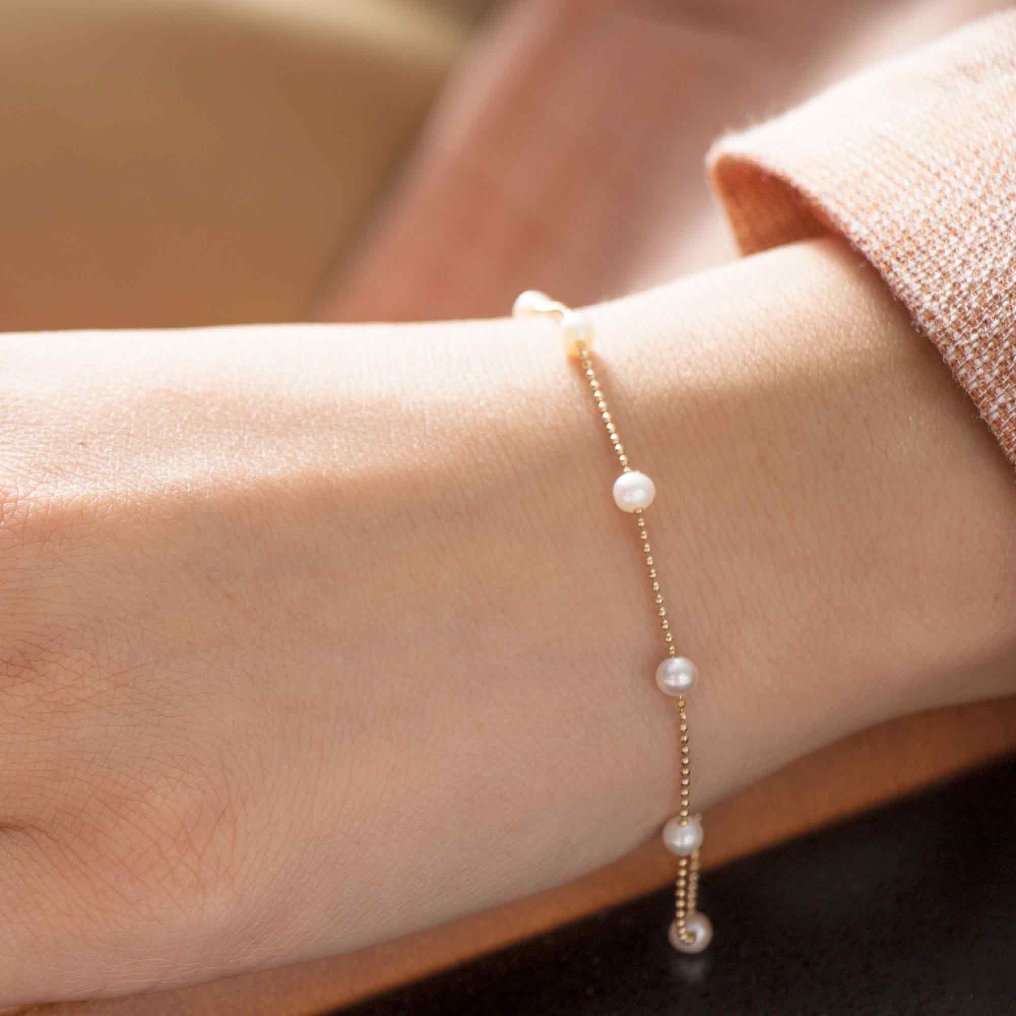 Elevate your jewelry collection with our 14K Solid Gold Pearl Bracelet, a delicate and sophisticated piece featuring lustrous freshwater pearls. Perfect for everyday elegance, special occasions, or as a thoughtful bridesmaid gift, this dainty bracelet pairs beautifully with any outfit.