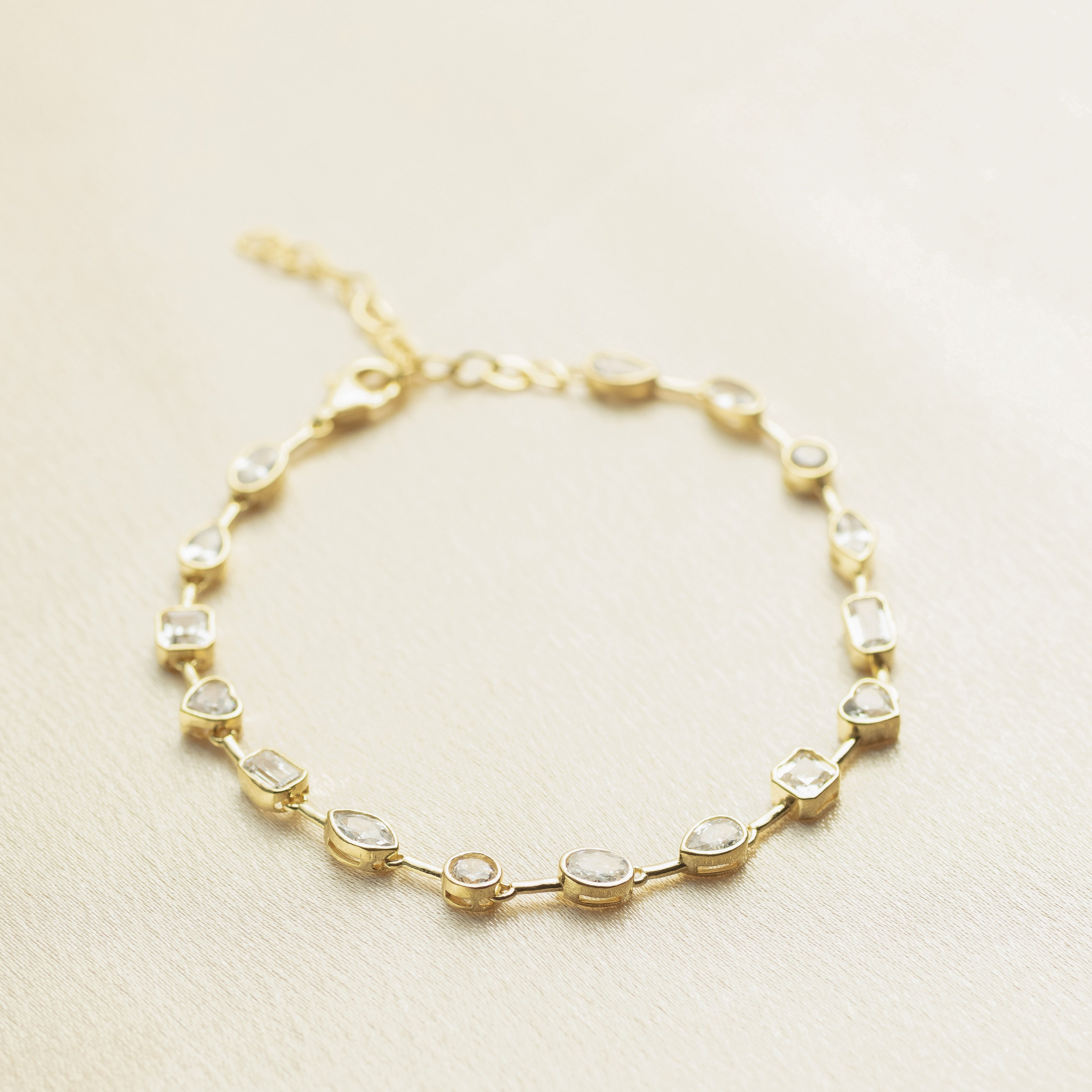Elevate your everyday style with this Gold CZ Station Bracelet in 14K Gold Vermeil. Featuring a delicate chain adorned with alternating round and emerald-cut cubic zirconia stones, this bracelet adds a subtle sparkle that’s both timeless and modern.