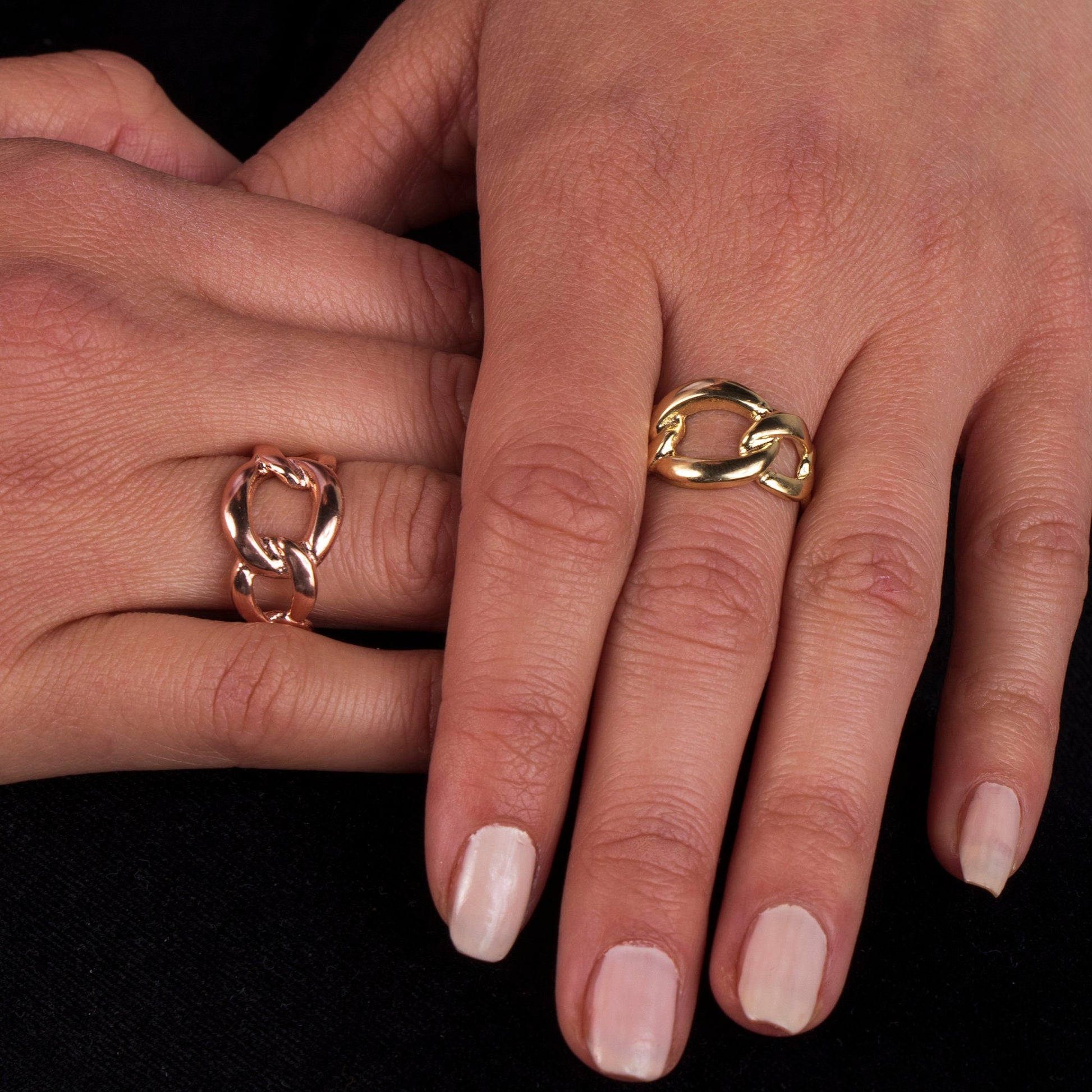 A perfect gift for special occasions—or for yourself. Introducing our Chunky Gold Chain Ring: bold, modern, and designed to make a statement. This eye-catching chain-link ring features a thick gold finish with a high-shine polish, offering a luxurious look that's both on-trend and timeless. Crafted using a thick layer of 14K solid gold over 925 sterling silver (vermeil), it’s the perfect alternative to solid gold—tarnish-resistant, hypoallergenic, and built to last. Its adjustable fit makes it ideal for everyday wear or layering with your favorite rings.