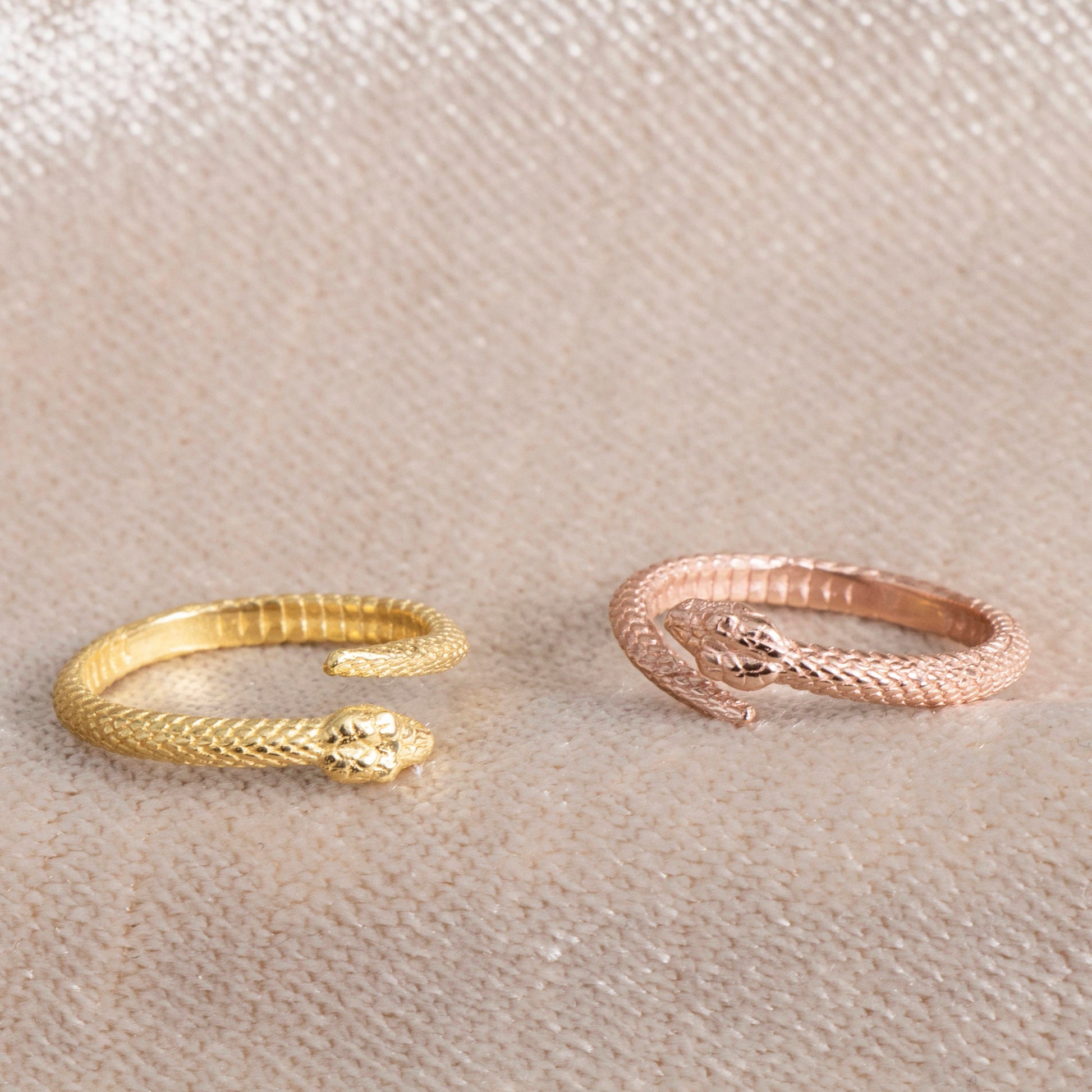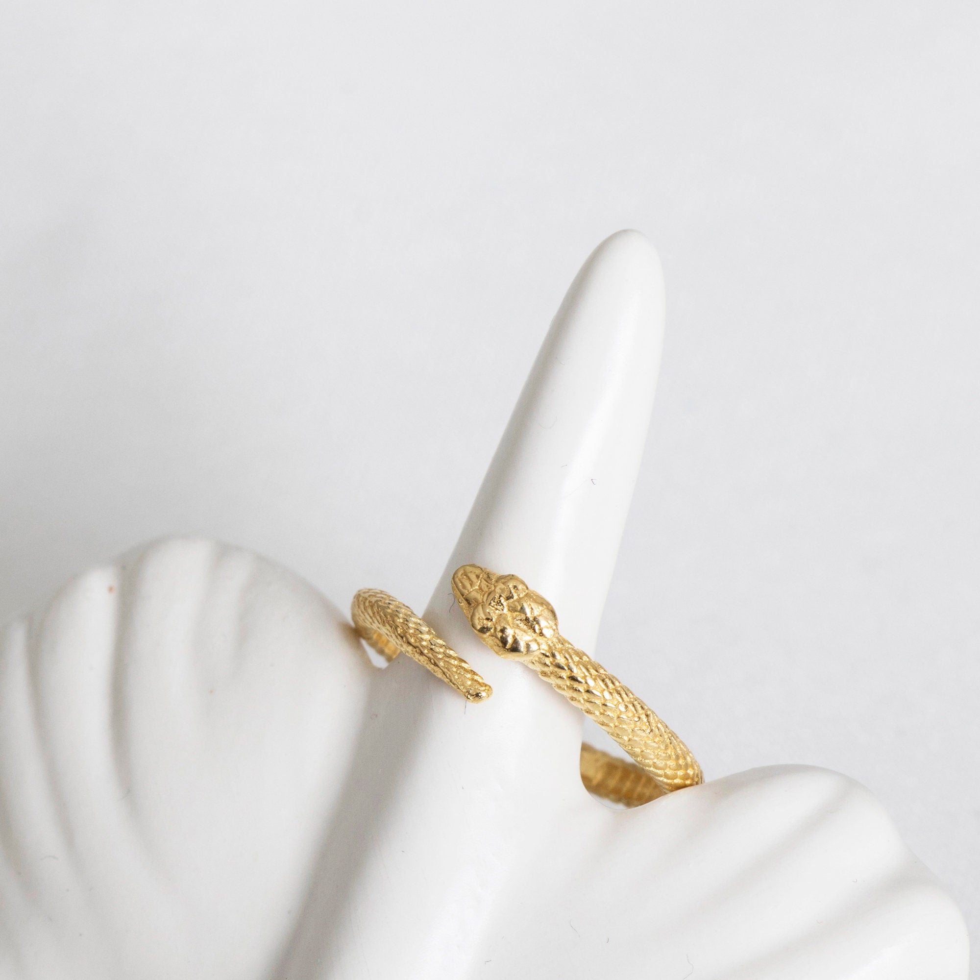 Add a bold yet elegant touch to your style with our Dainty Snake Ring. Designed with an open wrap silhouette, this piece captures the mystique of the serpent—symbolizing transformation, rebirth, and protection. Crafted from 925 sterling silver and plated with a thick layer of 14K gold vermeil, it offers the beauty of solid gold with long-lasting durability. Its adjustable design ensures a perfect fit for everyday wear or special occasions.