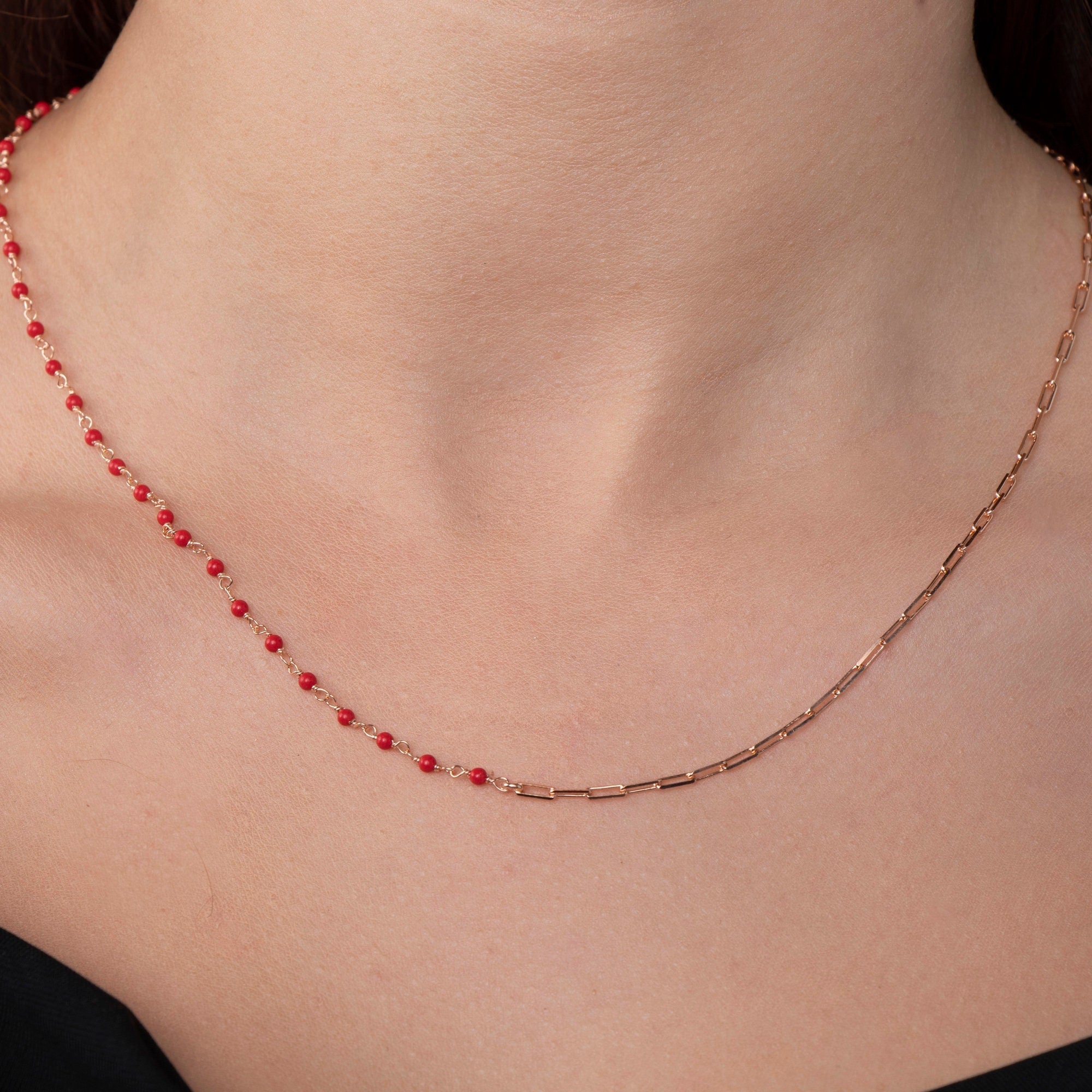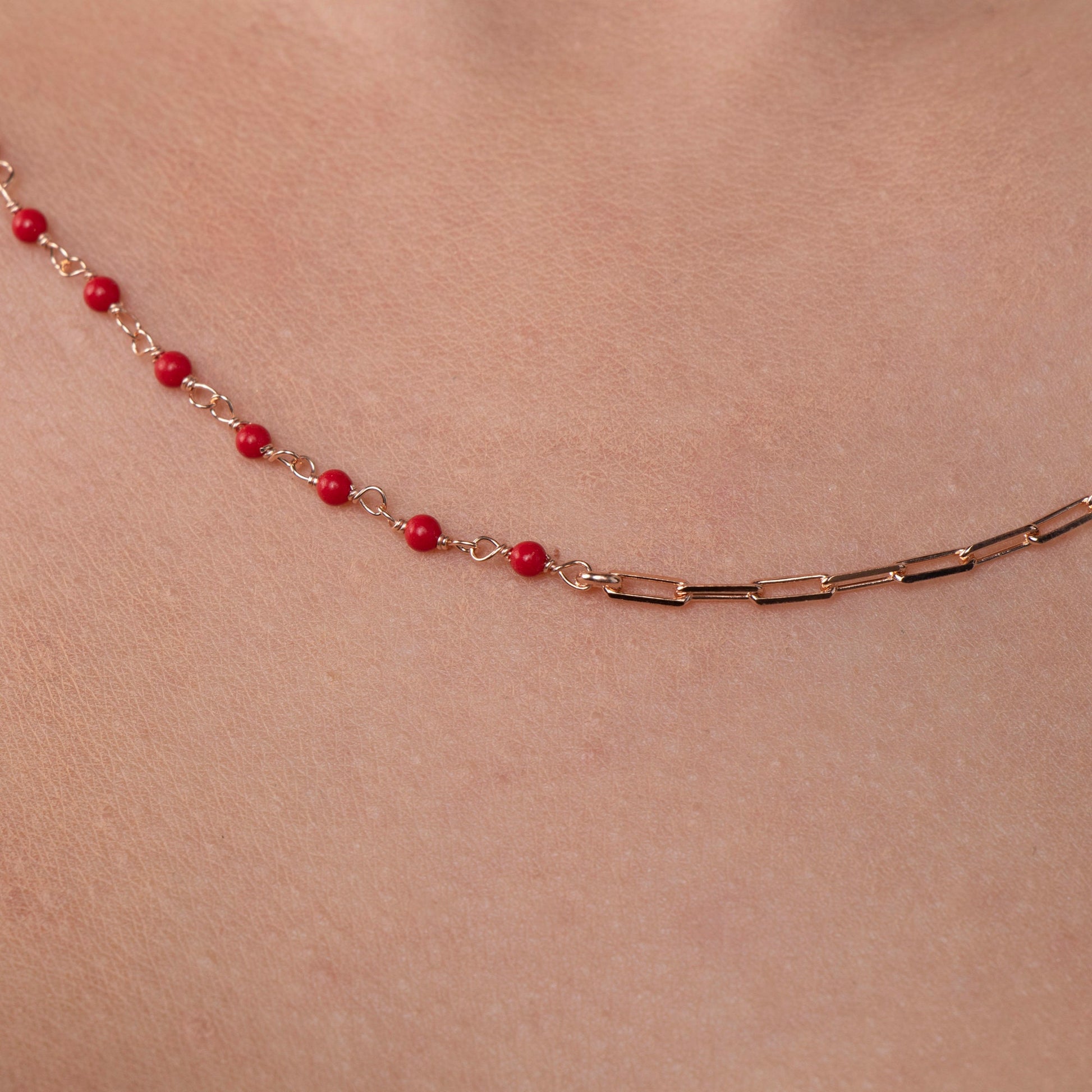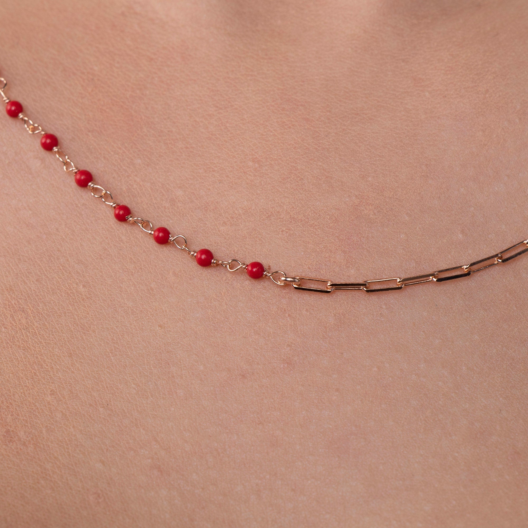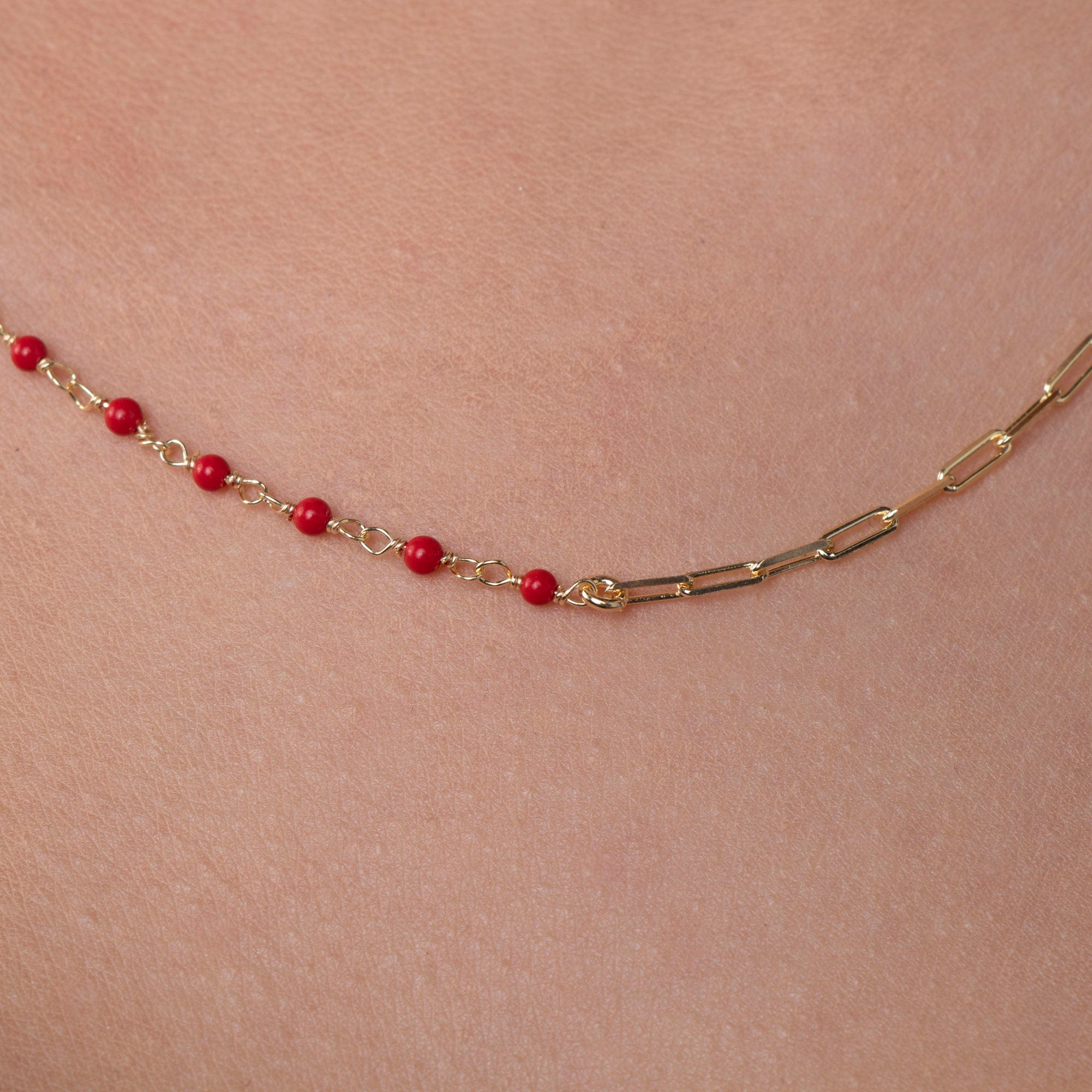Style: Coral Chain, Minimalist Coral Necklace, Red Coral Choker, Gift for Her