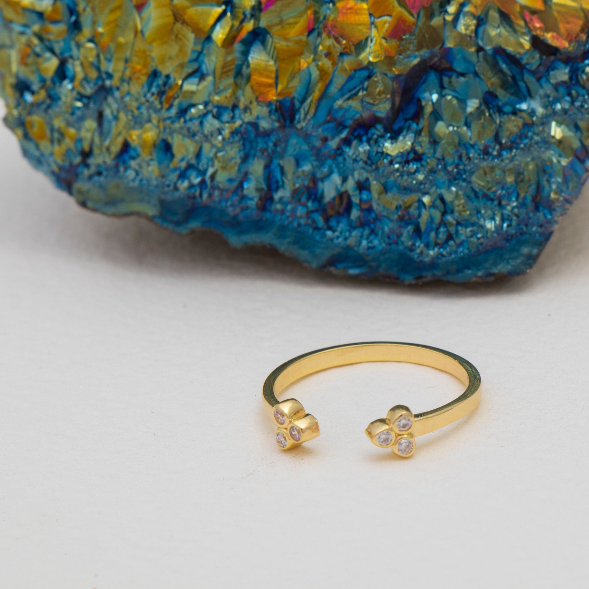 Add minimalist charm to your jewelry collection with this dainty Three Dot Ring. Crafted with a thick layer of 14K solid gold over 925 sterling silver using the high-quality vermeil technique, this open ring offers subtle elegance perfect for stacking or wearing alone. A thoughtful gift for special occasions—or a chic treat for yourself.