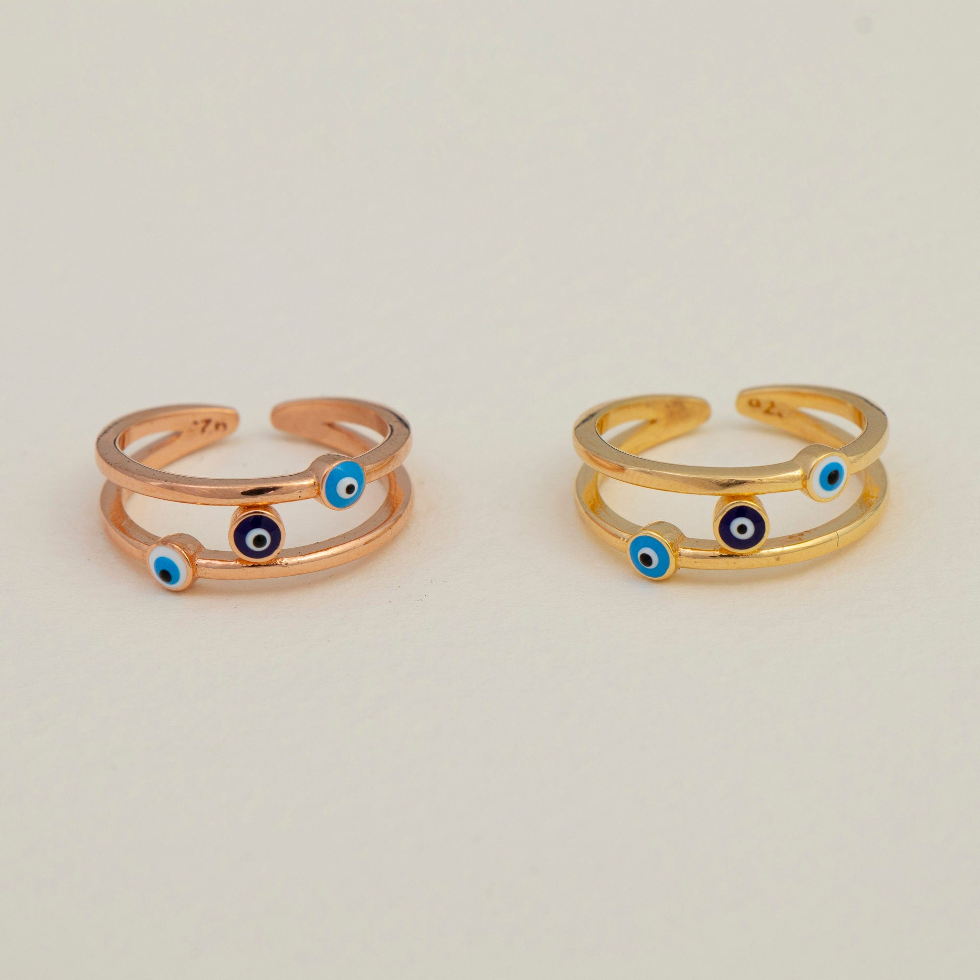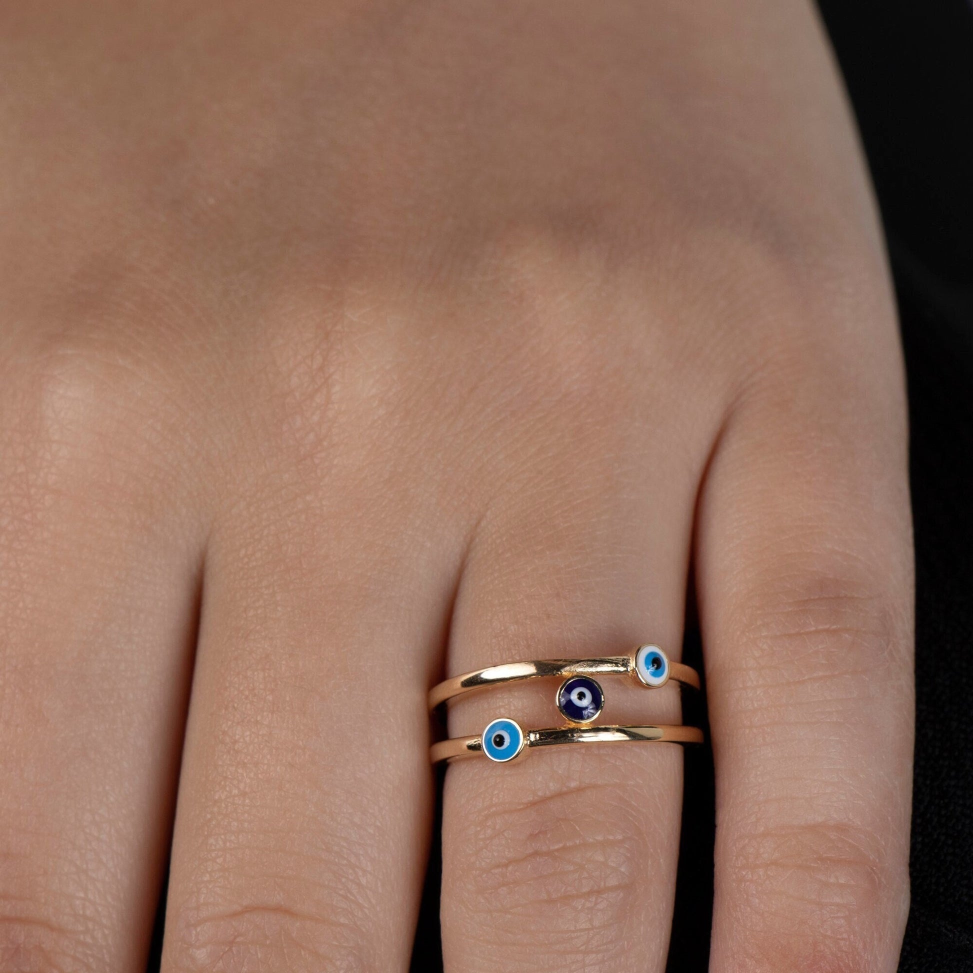 Add a touch of meaning and style to your jewelry collection with our dainty Enamel Evil Eye Ring. Symbolizing protection and good fortune, this adjustable stacking ring makes the perfect everyday accessory or thoughtful gift for someone special.