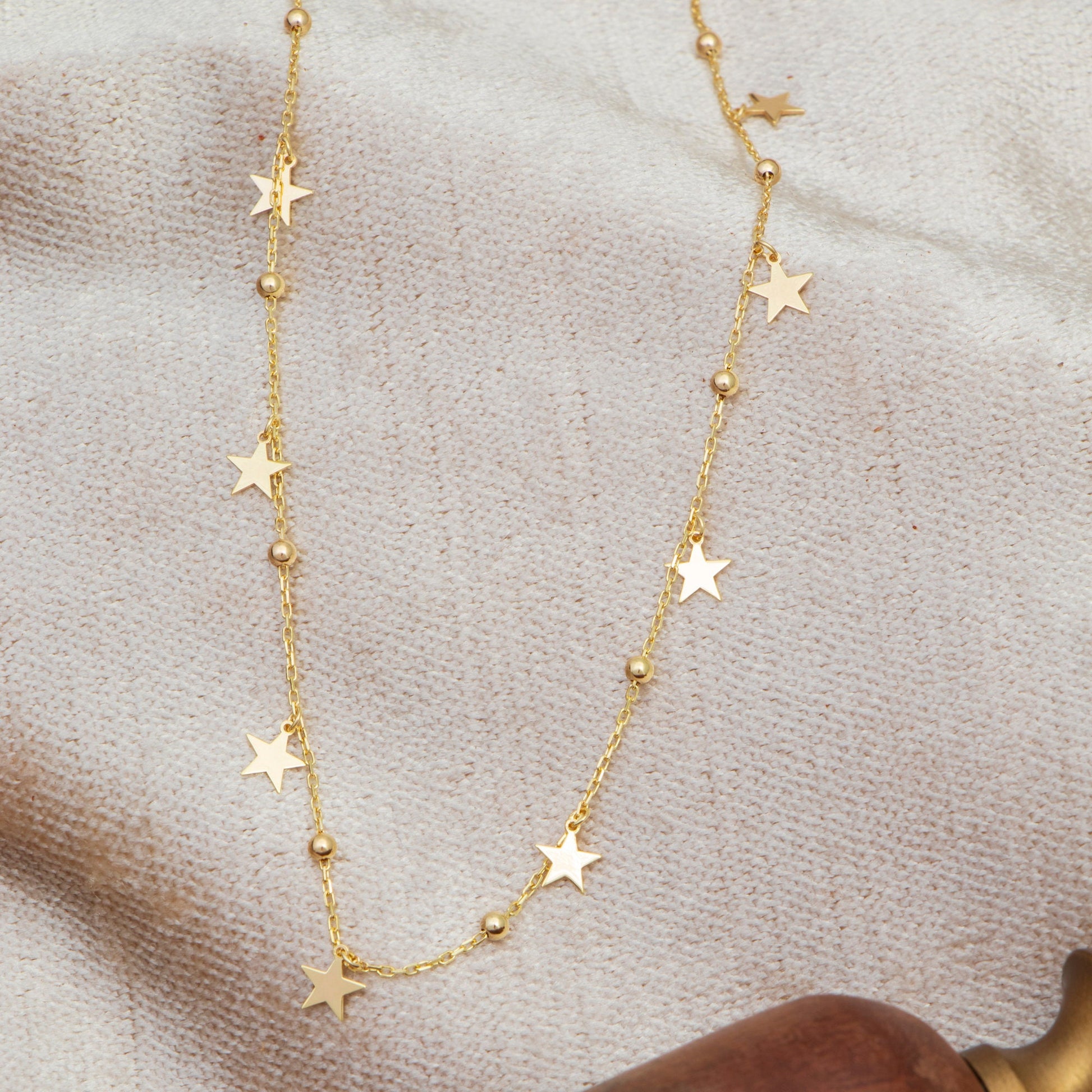 Elevate your jewelry collection with our Gold Satellite Bead Star Necklace, a dainty and celestial-inspired piece perfect for everyday wear or special occasions. This delicate necklace features a charming star motif on a beautiful satellite bead chain, ideal for layering or wearing solo.