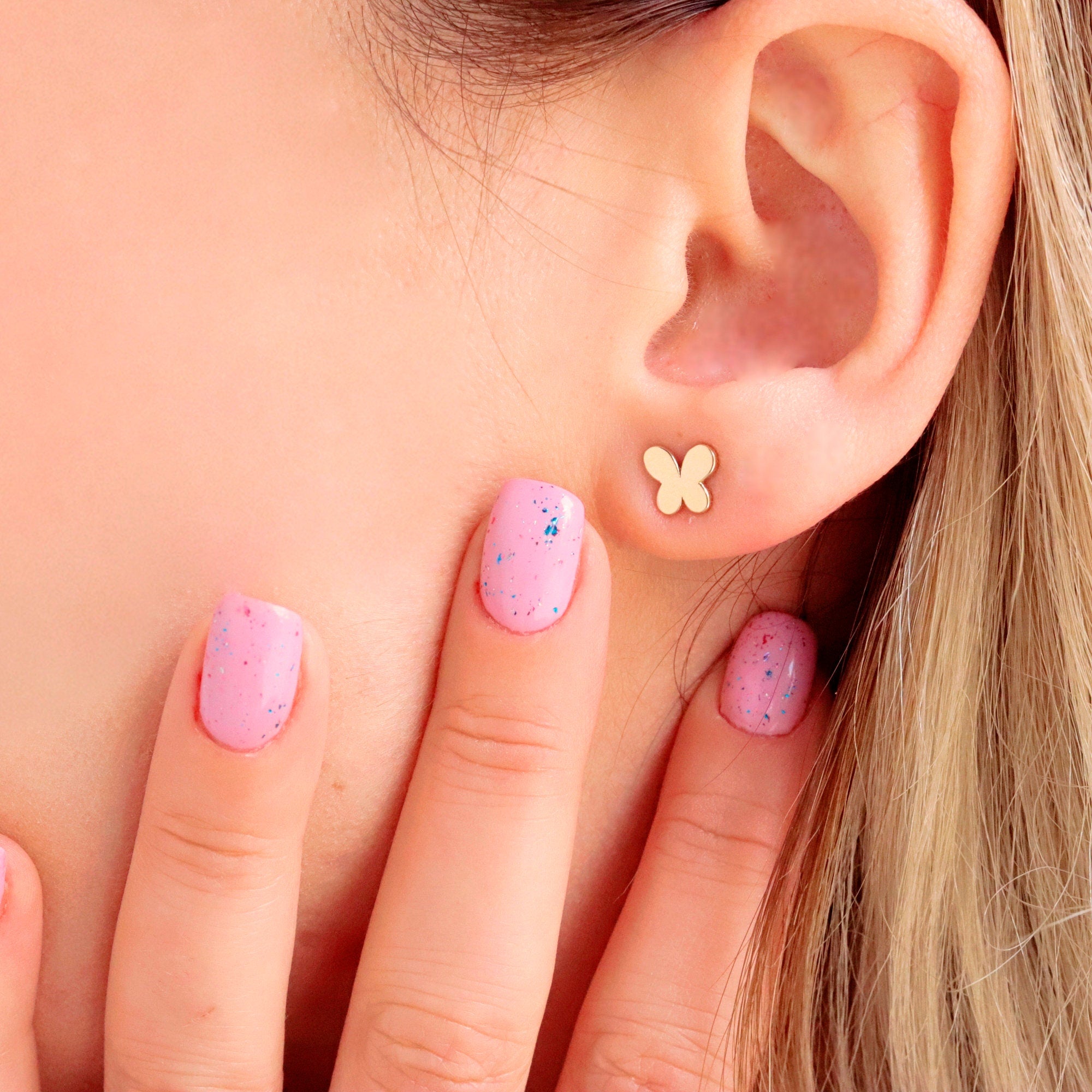 Add a touch of whimsy to your style with our 14K Solid Gold Butterfly Stud Earrings — delicate, timeless, and perfect for everyday wear. Their dainty size makes them ideal for stacking with other earrings, while the butterfly design brings a nature-inspired charm to any look. Whether as a thoughtful gift or a treat for yourself, these studs are a must-have for any minimalist jewelry lover.