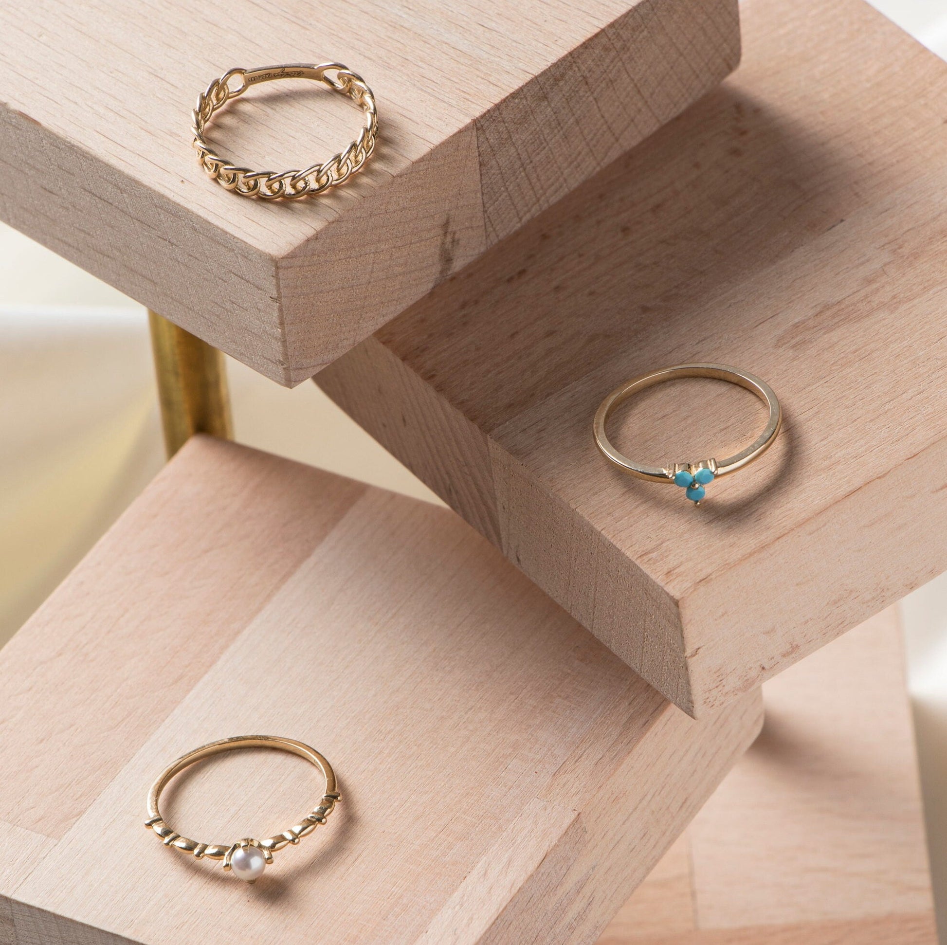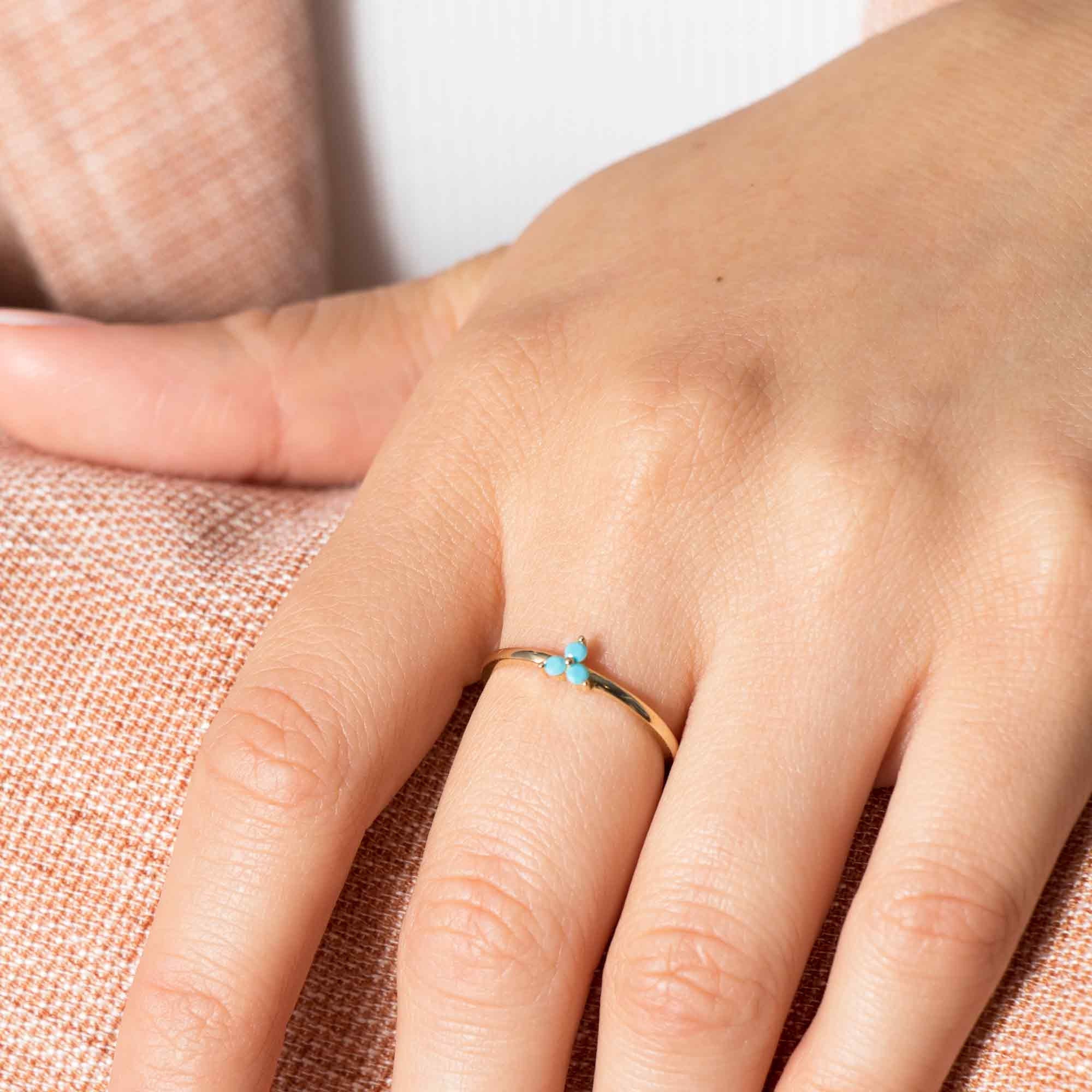 Vibrant, dainty, and full of charm — our 14K Solid Gold Three Stone Turquoise Ring brings a touch of color and elegance to your jewelry collection. Featuring three genuine turquoise stones, this minimalist yet eye-catching design is perfect for everyday wear or stacking with your favorite rings. A meaningful gift for someone special or a timeless treat for yourself, this ring is crafted to be treasured for years to come.