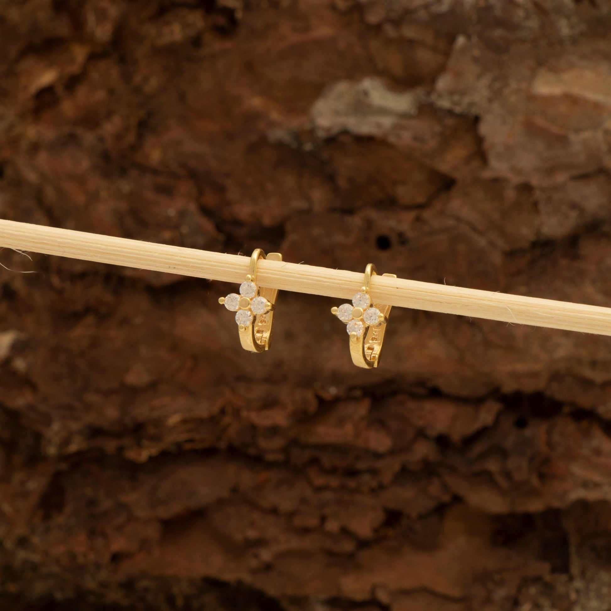 Delicate and charming, these tiny gold hoops with flower-shaped CZ stones are the perfect touch of sparkle for everyday wear or special occasions. Their minimalist design makes them easy to pair with any outfit, while the floral detail adds a feminine, timeless elegance. A thoughtful gift for her or a dainty addition to your own collection.
