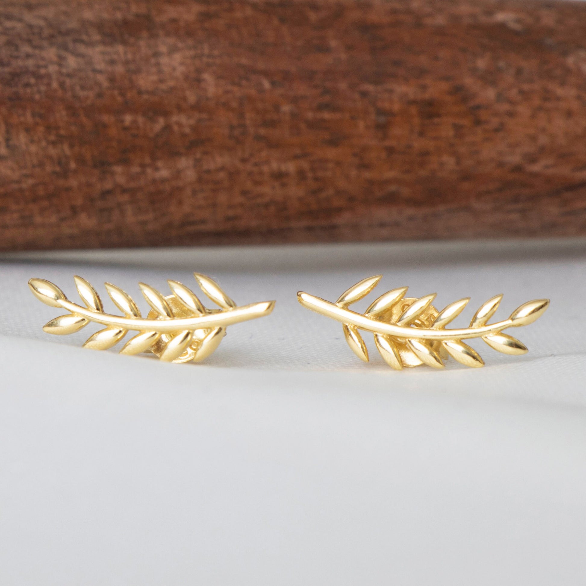 New Dainty Olive Leaf Stud Earrings. A perfect gift for special occasions, or for yourself. ★1 YEAR WARRANTY★ Our products are plated with a thick layer of 14k solid gold on sterling silver (925K), made with a special technique called “vermeil”. All our jewelries are guaranteed for one year against tarnishing and deterioration. Provided that they are protected from water, soap and chemicals, they can be used for many years with their first day appearance. Our products are the best alternatives of solid gold jewelries. Do not hesitate to send us a message if you have any queries! Minimalist Stud Earrings, Olive Branch Earrings, Gold Leaf Earrings, Olive Leaf Earrings, Dainty Stud Earrings - Earrings Details • Measurements: 6 mm by 17 mm • Thick solid gold layer on top of 925 Sterling Silver base • Nickel free • Hypoallergenic ★ We use a thick layer of 14k solid gold on 925K sterling silver. ★ Each order will be beautifully packaged for gift giving in a jewelry box.