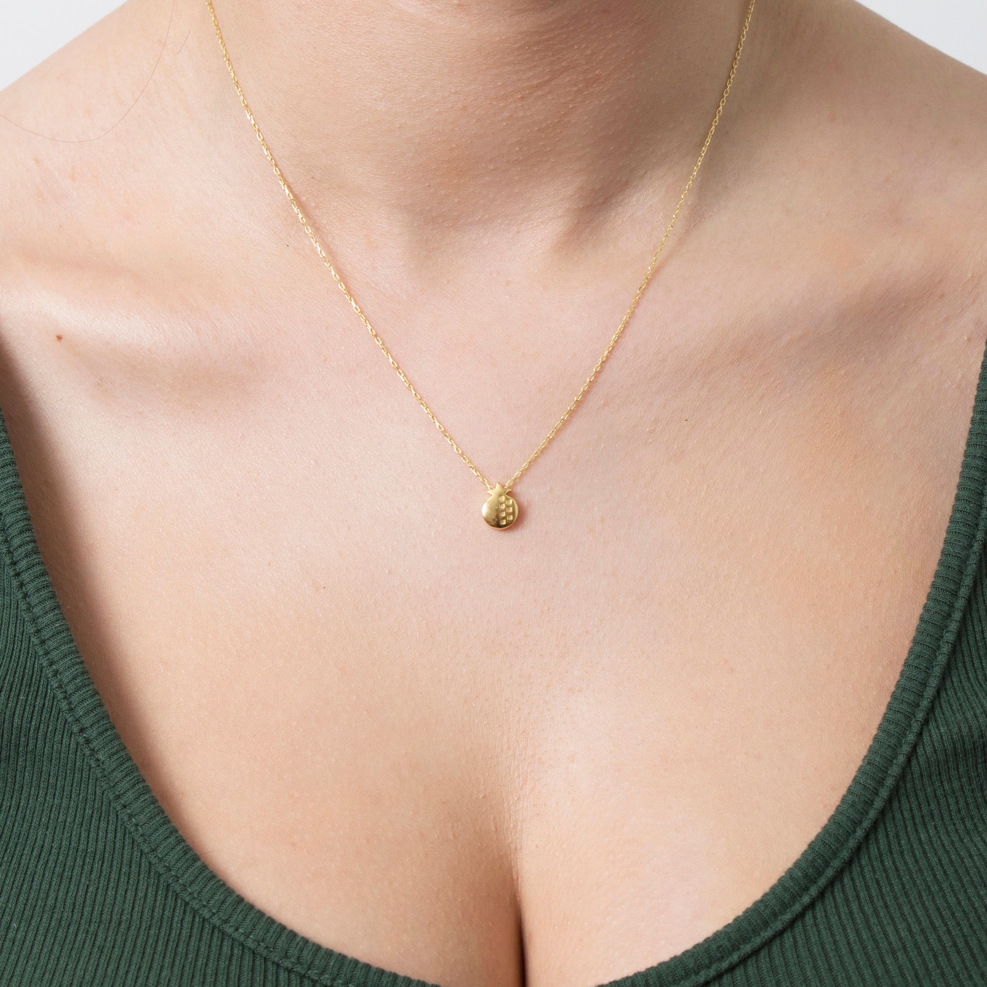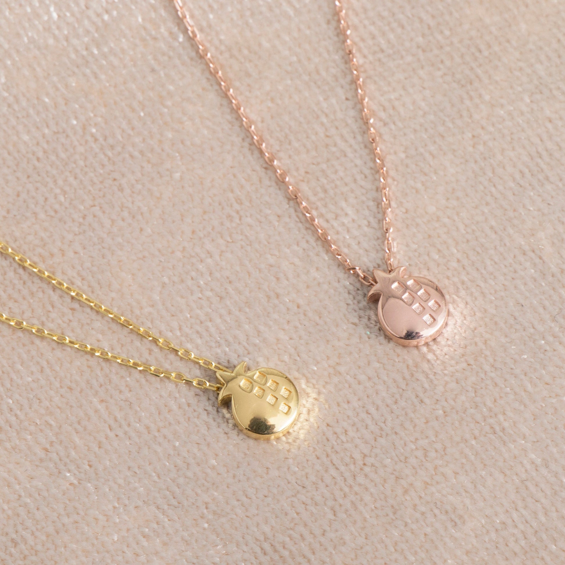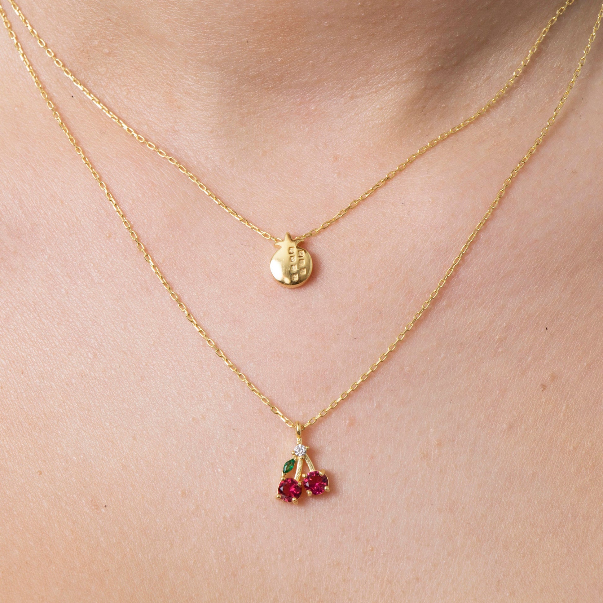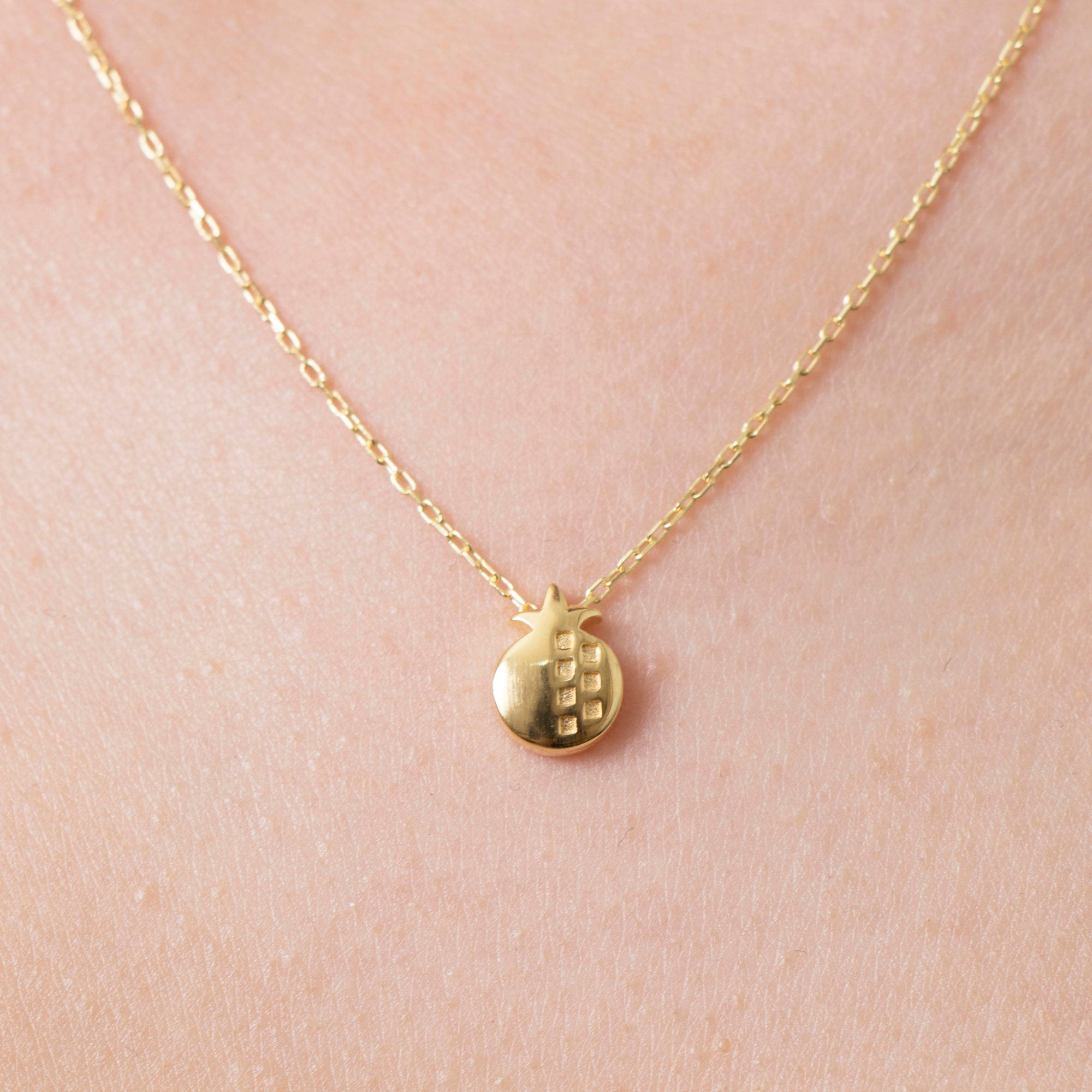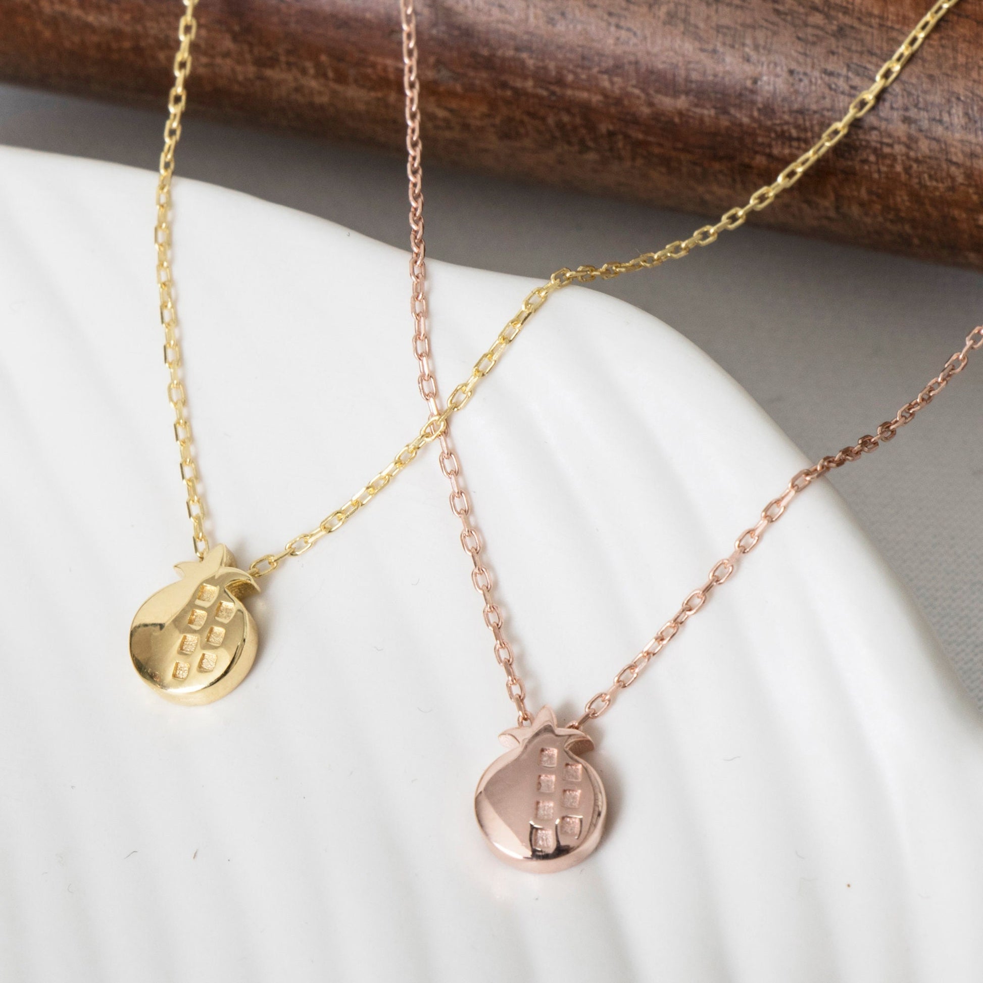 Our new Gold Pomegranate Necklace is a symbol of abundance, prosperity, and good luck. With its delicate fruit design, this necklace is a meaningful accessory and a thoughtful gift for special occasions—or for yourself.