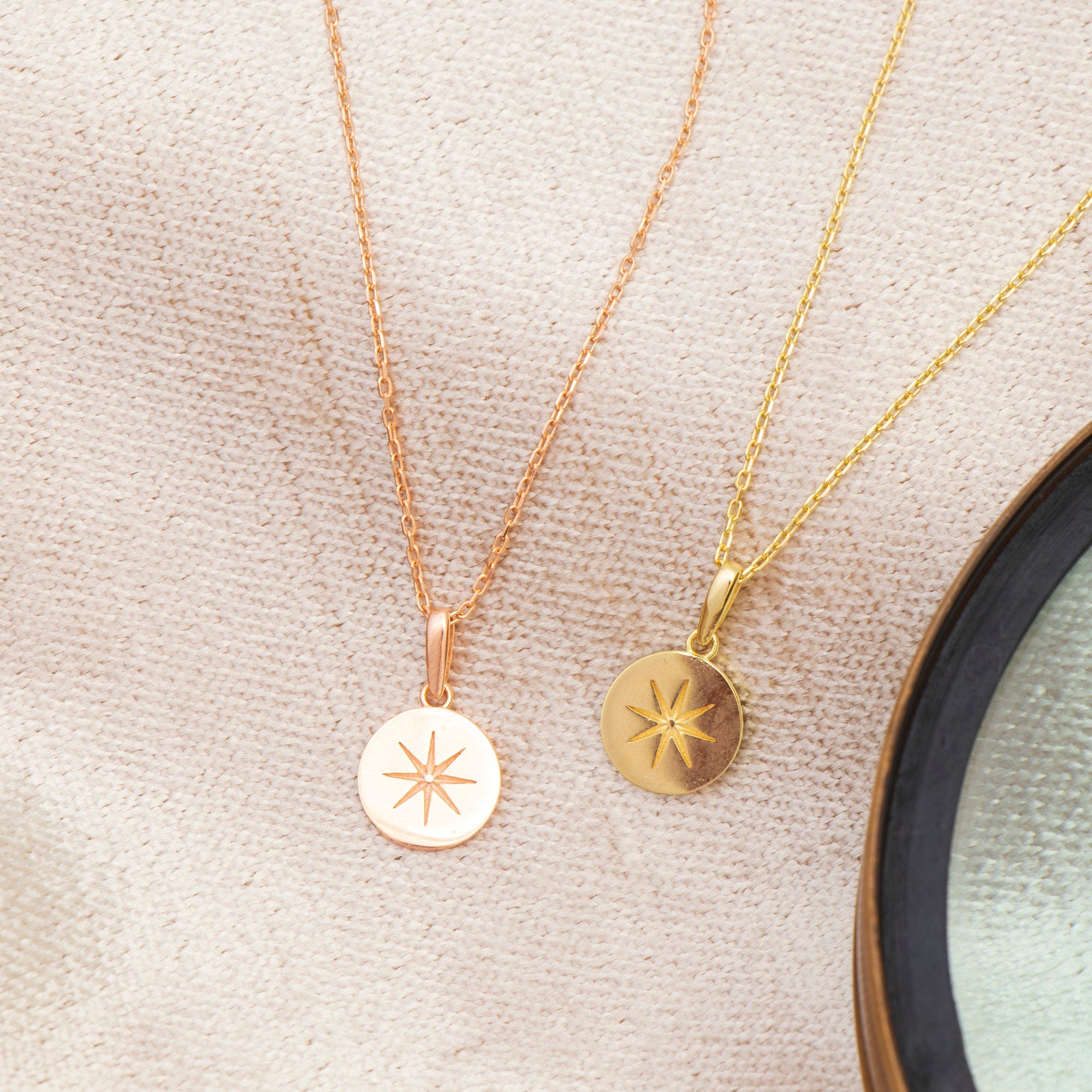Add a touch of celestial charm to your jewelry collection with our Dainty Gold Starburst Coin Necklace. Featuring a tiny North Star pendant with a delicate starburst design, this minimalist necklace is perfect for everyday wear or as a thoughtful gift for someone special.