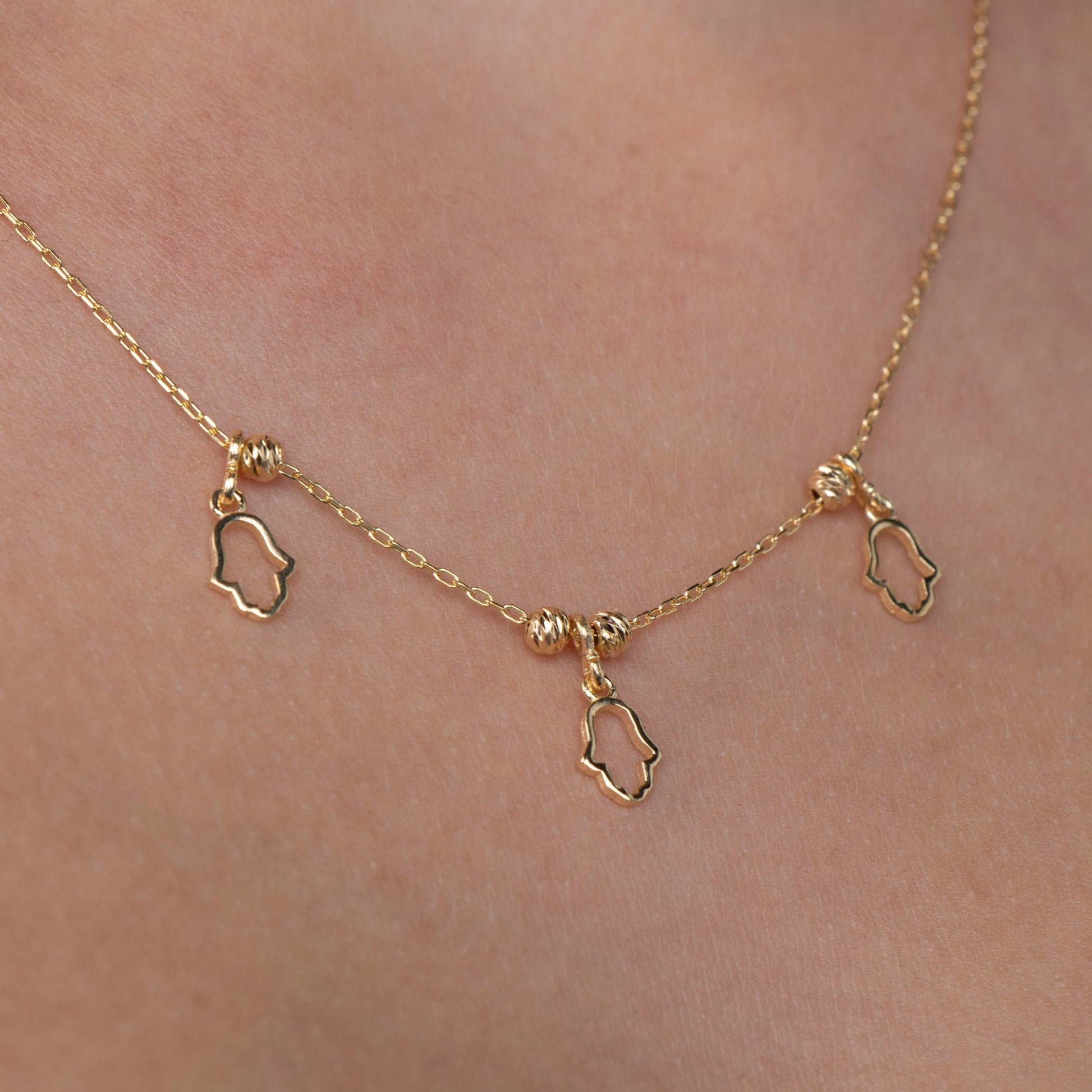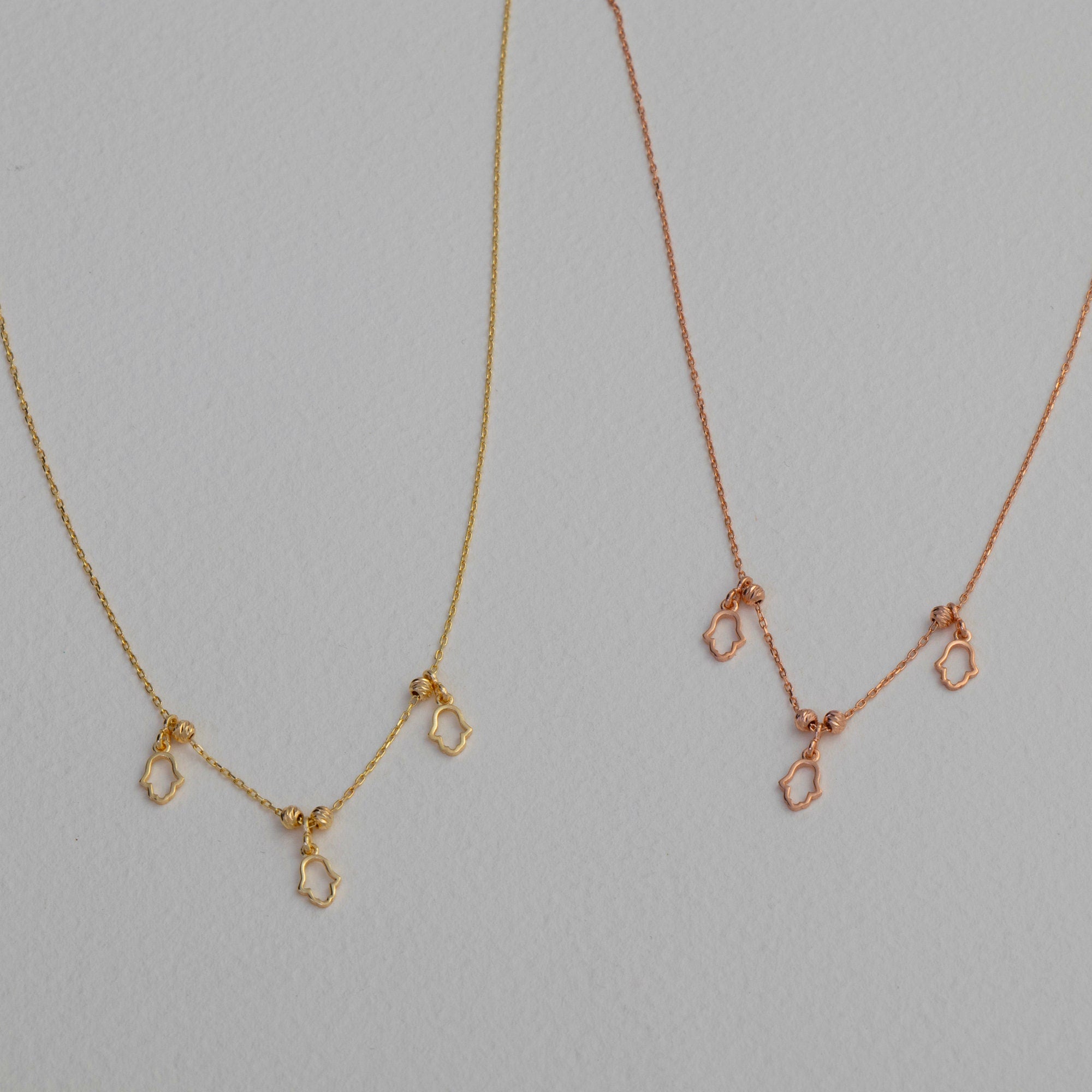 Protective, meaningful, and elegant — this Gold Hamsa Necklace (Hand of Fatima) is designed to bring style and positive energy to your everyday look. Its delicate pendant and timeless design make it a versatile piece, perfect for layering or wearing solo.