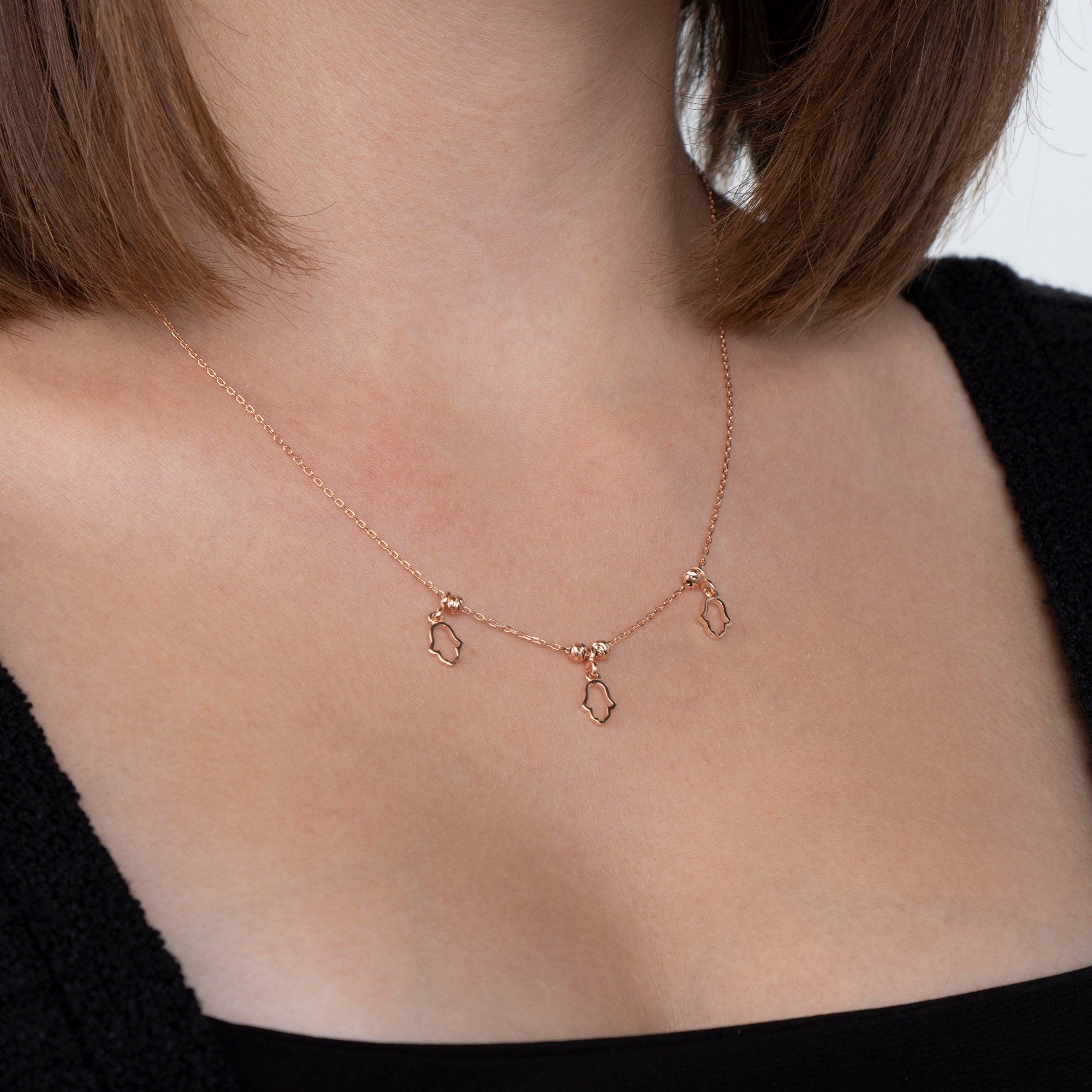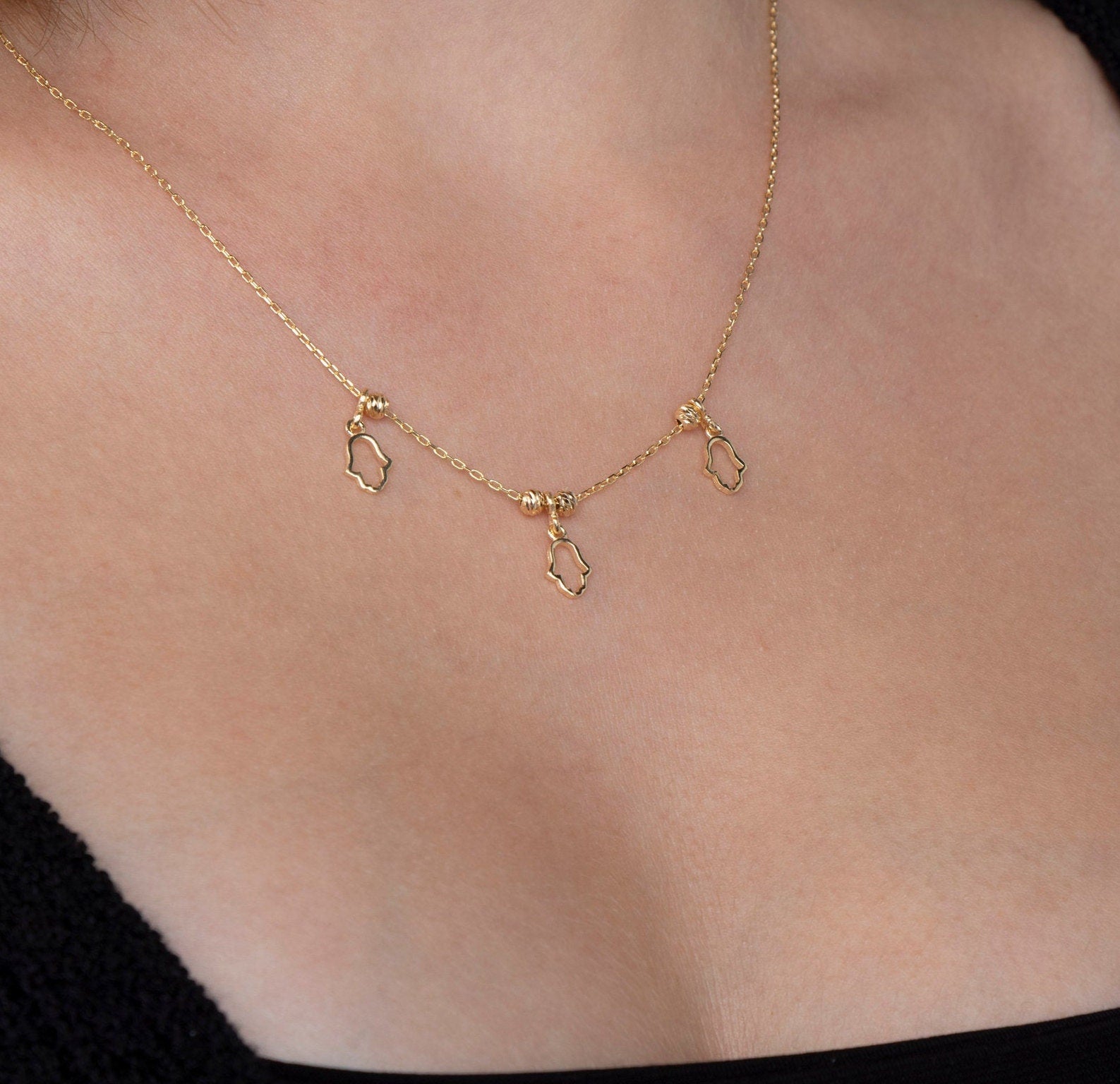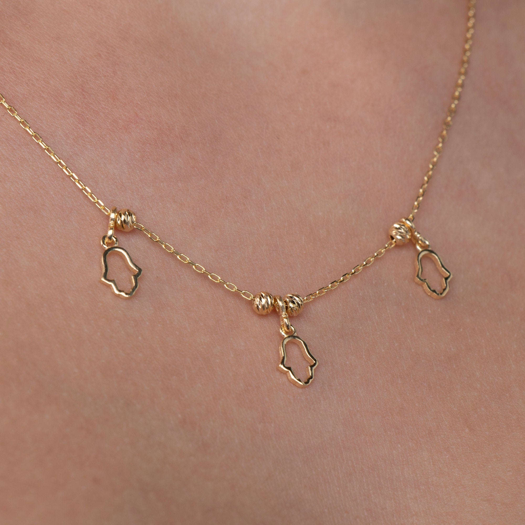 Style: Hamsa Pendant, Hand of Fatima, Protection Necklace, Evil Eye Charm, Kabbalah Jewelry, Dainty Gold Necklace