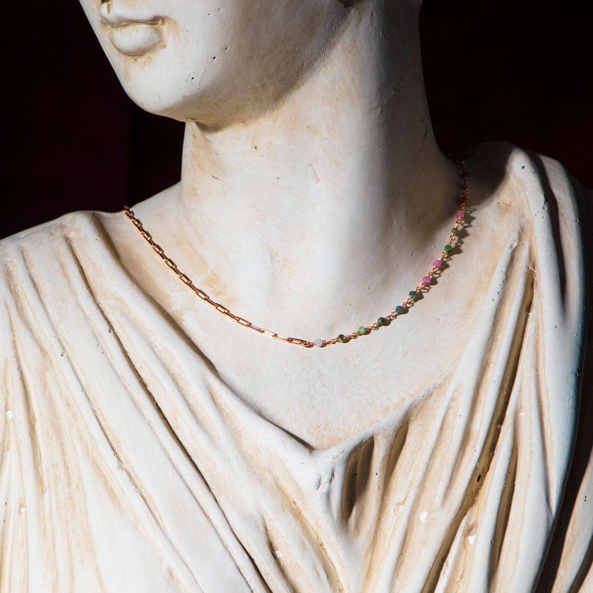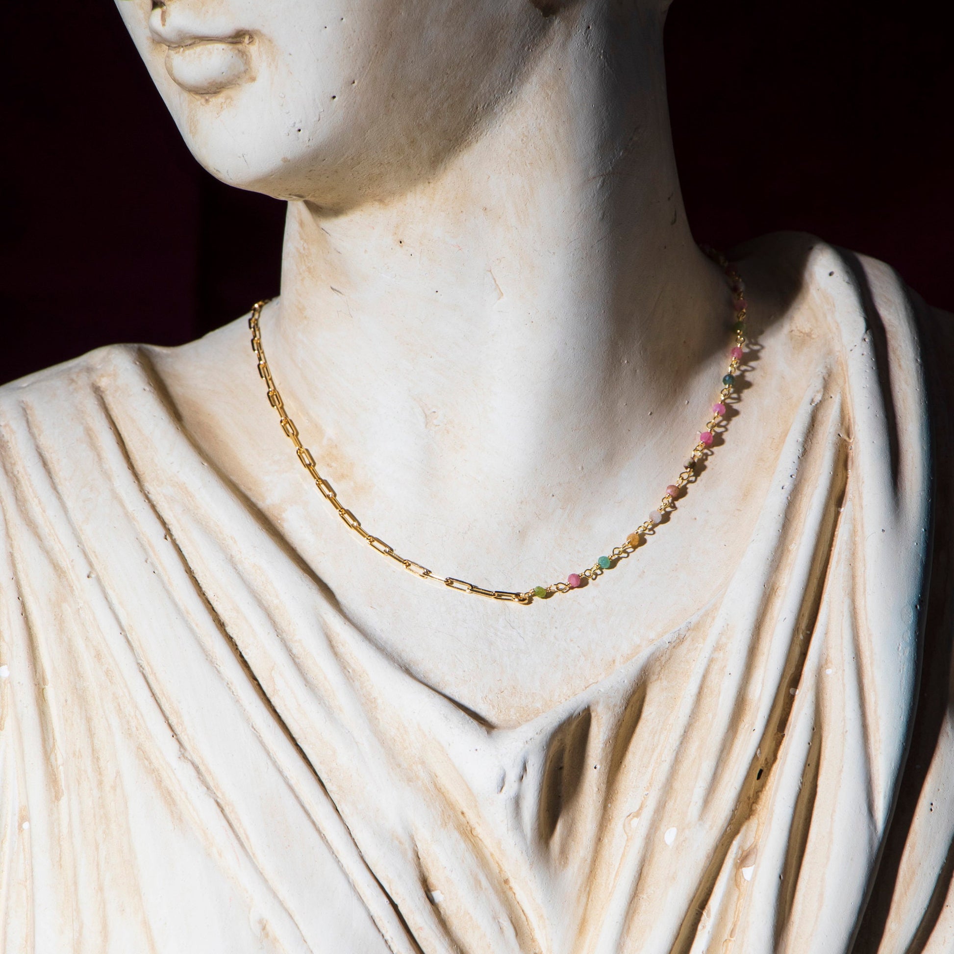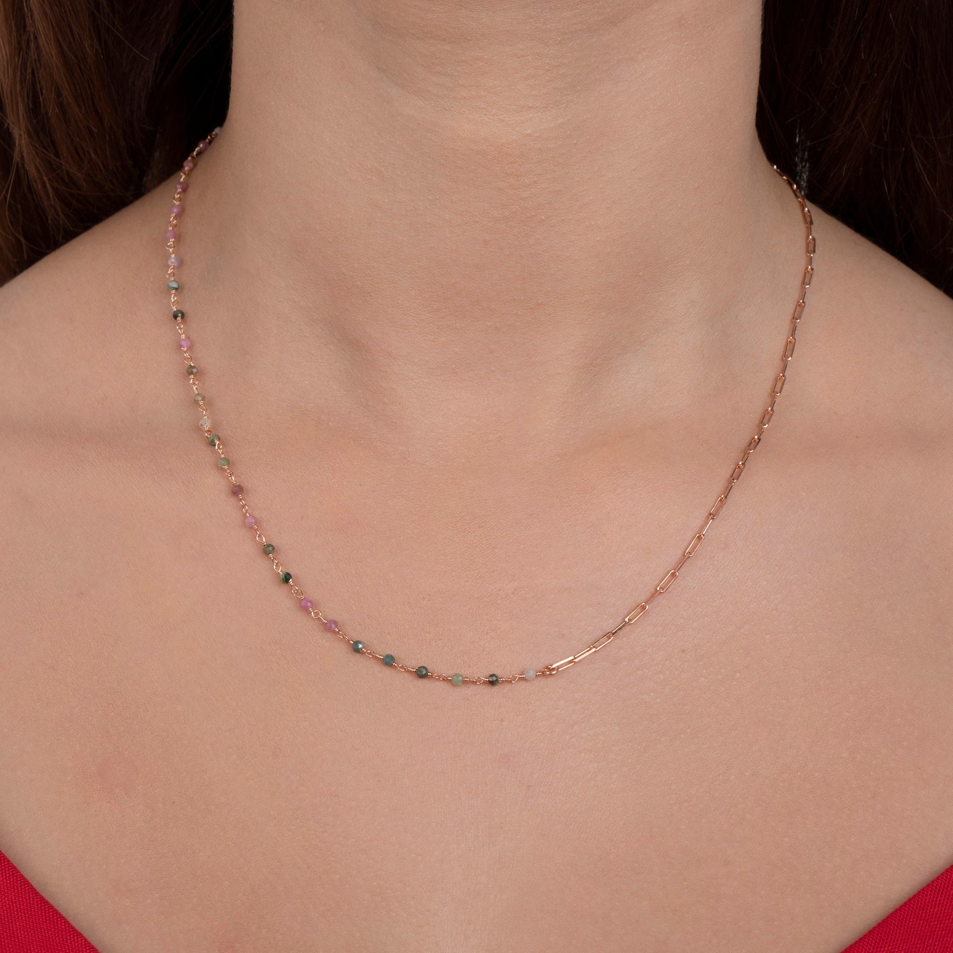 Add a subtle pop of color to your everyday look with our Dainty Tourmaline Beaded Chain Necklace. This delicate necklace features vibrant tourmaline beads on a fine chain, creating a minimalist yet eye-catching piece perfect for layering or wearing alone. Ideal as a thoughtful gift or a personal treat, it combines elegance with meaningful gemstone charm.