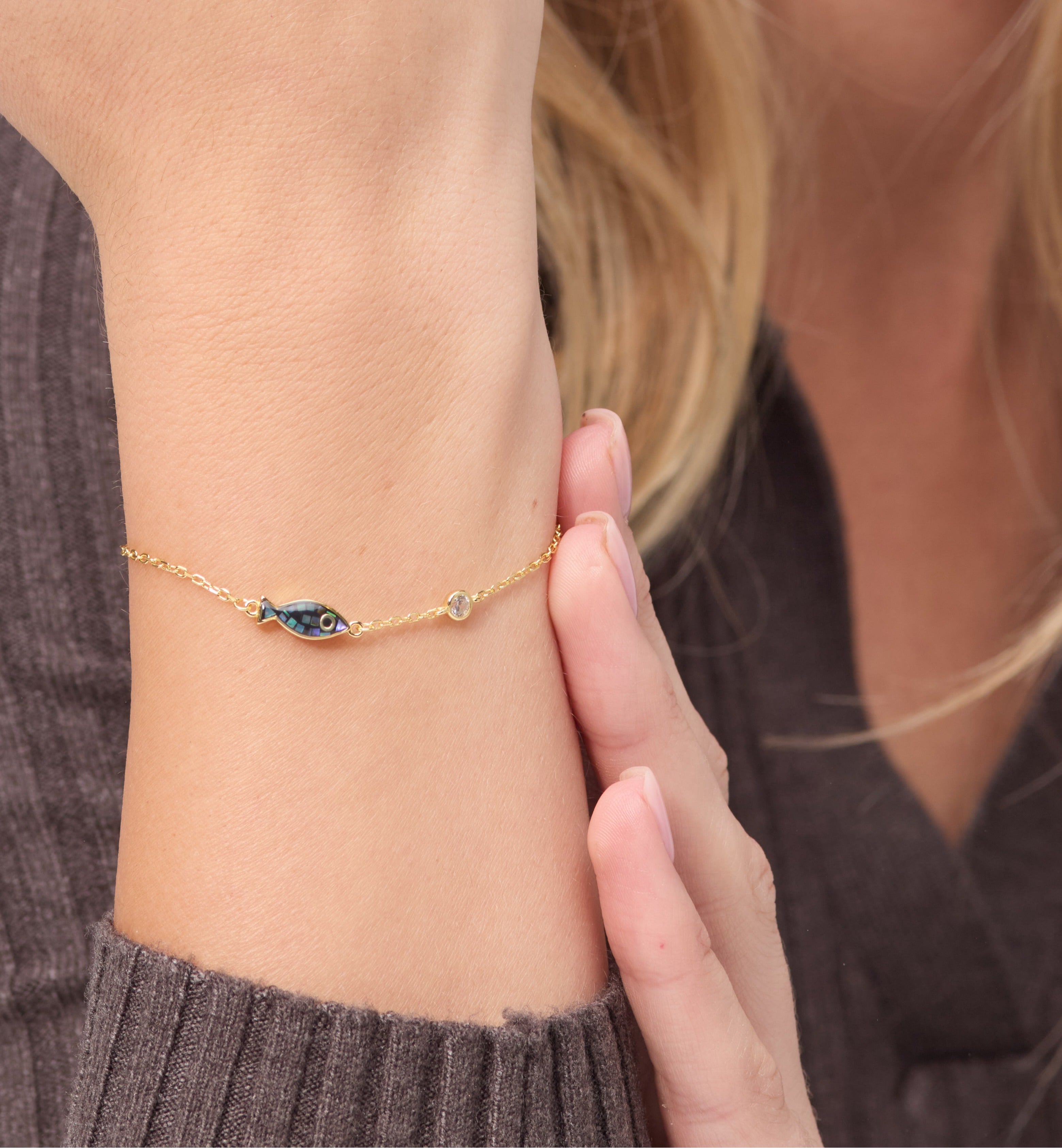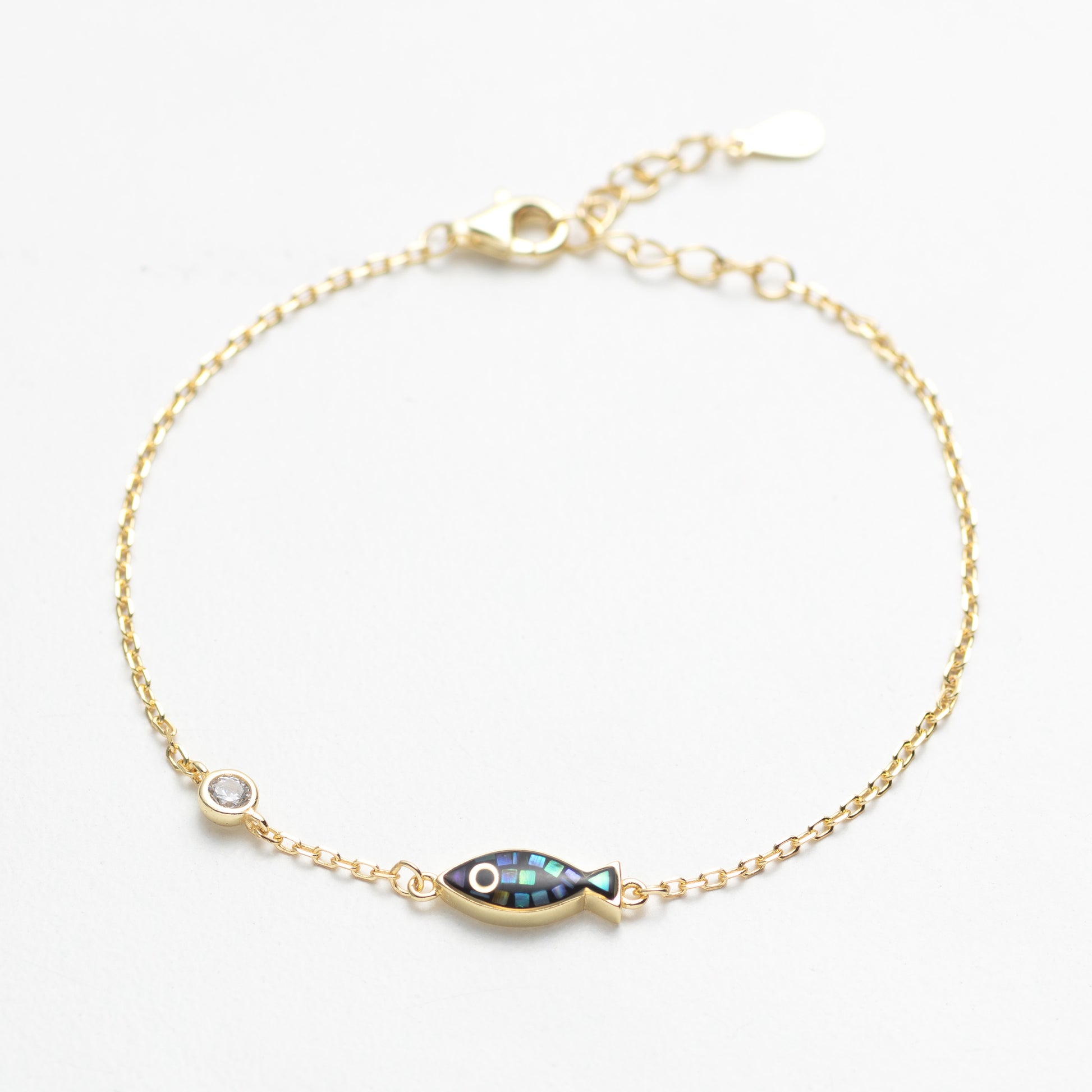 The delicate bracelet features an abalone shell fish charm with iridescent hues that shimmer in the light — a symbol of luck, freedom, and harmony. Its adjustable chain ensures a comfortable fit for any wrist, making it perfect for everyday wear or as a thoughtful gift.