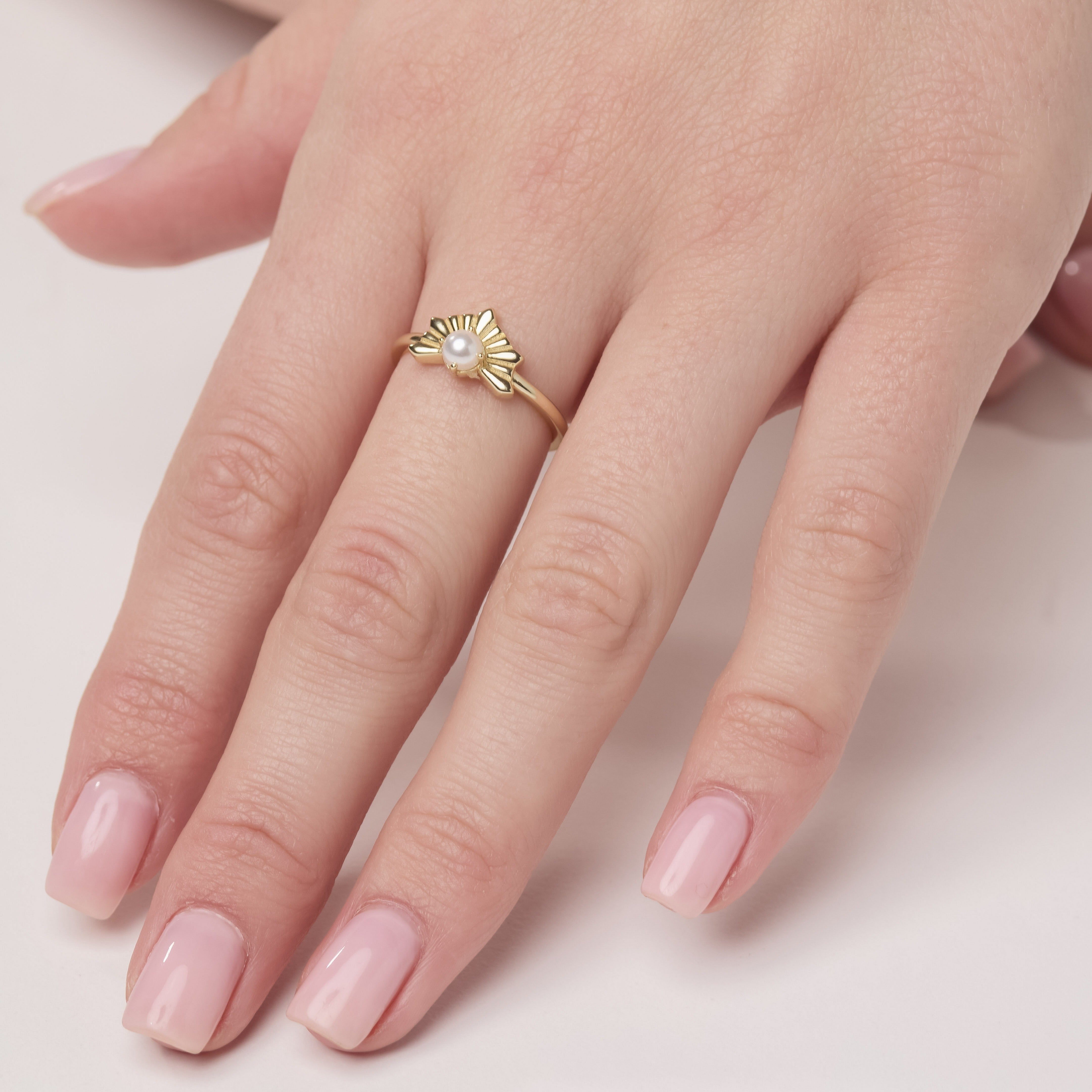 Add a touch of radiance to your look with this Sunburst Pearl Ring in 14K Gold Vermeil. Featuring a luminous freshwater pearl framed by a golden sunburst design, this ring symbolizes light, renewal, and effortless elegance.